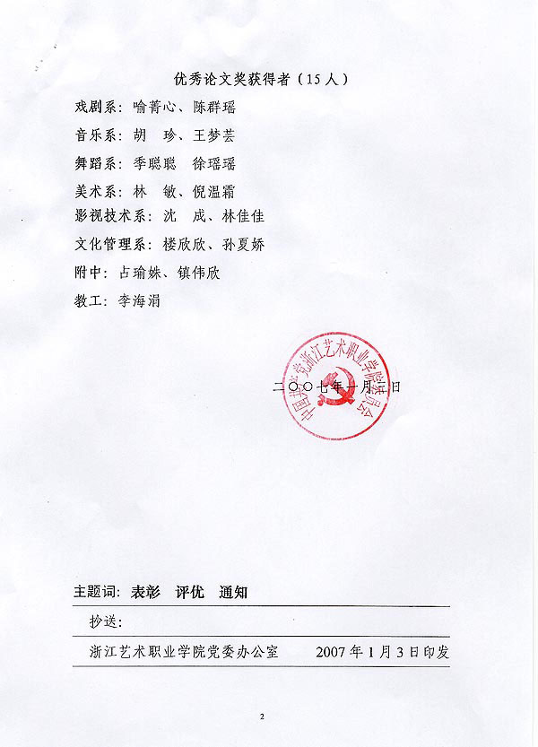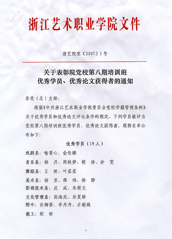 关于表彰党校第八期培训班优秀学员、优秀论文获得者的通知