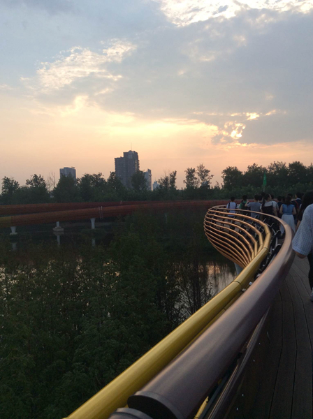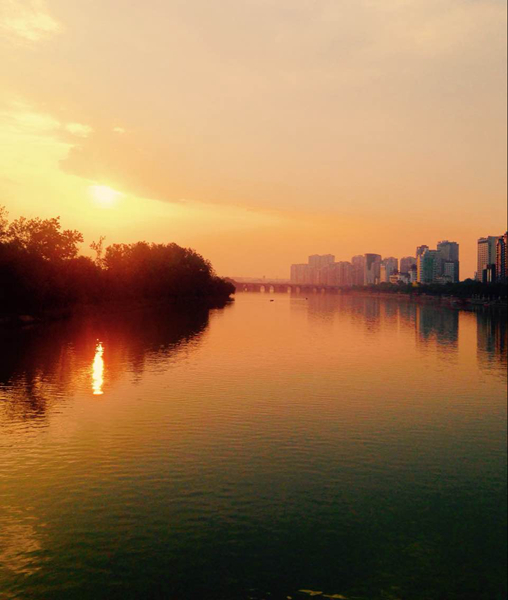 阳光格外的灿烂。在这初秋的时间,连空气里都泛着一股甜甜凉凉的滋味,让人舒服极了。金华迎宾大道两侧的树木都像在对我们招手,好似在迎接我们一般,旅途中的疲惫突然就被一扫而光。在这充满绿意的城市里,我决定放下心里所有的负担,要好好享受这一片静土。