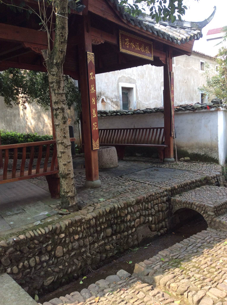 最后,我们来到了金华的古村落---寺平村。导游小姐带着浓浓的乡音,她强调自己是嫁到村里的湖南媳妇,但是她所有的言语之间无一不是透漏着身在这充满文化记忆的古村落中的骄傲。走进古村,首先映入眼帘的是满是鹅卵石铺成的地面,古色古香,大户人家门前的砖砌石雕,印证了一个时代的辉煌,古时候劳动人民的智慧全然展现在一幅幅精美的砖雕中。娘娘井的故事仿佛带我们回到了那个娘娘井边汲水洗漱的年代,看到了淑妃娘娘的一路历程,一切好像都在眼前。走过一条一条的小巷,经过时看到老人们眼中满是淳朴,那是没有任何世俗争斗的眼神,满满的都是那个年代的记忆。随着历史的转动,在弯弯曲曲的小巷中我们离开了寺平村,短短的一个上午让我们见证了这个村落曾经的繁华,感受了这个村落别具一格的韵味。