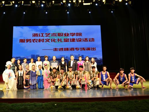 73,2014年度省级文化系统农村文化礼堂建设服务活动在临安启动,一场“你点我演”的艺术盛宴首先在横街村热烈开宴。演出在该村整修一新的文化礼堂举行,800多个座位座无虚席,当地群众像过节一样云集而聚,乐淘淘地观看演出,许多观众站着看完整场演出。晚会节目内容丰富,越剧表演《十八相送》细腻传神、韵味深厚,小品《接站》演绎生动,女声独唱《红旗颂》专业的民歌唱法令观众叹为观止,展现了浙艺院的艺术特色,赢得了好评。横街村文艺爱好者也带来当地的《红绸舞》,与专业表演擦出了不一样的火花。演出现场气氛热烈,观众的掌声与师生们的表演构成了一道独特的风景。第二天,浙艺院来到海鸟县嵊泗延续精彩表演。男子群舞《草原汉子》高空翻技巧令大开眼界独舞《小薇小薇》俏皮可爱,男子三人舞《小伙儿四弦马缨花》幽默风趣、惹人喜爱;由嵊泗县文化馆业务骨干、我院校友项波和张弦表演的男女声表演唱《舟山我的亲亲家园》给人以耳目一新之感。海盐行,浙艺院给海盐县明珠村村民们献上艺术大餐,女子舞蹈《六月茉莉》清醒自然,青年教师张凌演奏的琵琶独奏《彝族舞曲》,高超的琴艺赢得台下观众的阵阵掌声;女子舞蹈《人间四月》婀娜的舞姿吸引全场的眼球。在嵊泗海盐县明珠村,浙艺院教师还对当地文艺工作者和文艺爱好者进行艺术培训辅导,曾参与大型史诗《复兴之路》编导的包峥剡老师作舞蹈编导讲座,通过PPT演示讲授舞蹈编导技巧;其他专业教师分别进行琵琶、声乐和小品表演等培训辅导,手把手教授文艺爱好者,令当地群众受益颇大。78日,湖州吴兴作为演出的最后一站,师生们丝毫没有懈怠,精彩展示,完美收官,为第一阶段服务农村文化礼堂建设活动画了一个完美号。各地观众对浙艺院师生的表演甚表赞赏,有的称越剧唱得好,有的说舞蹈跳得棒,他们表示,希望今后能看到拉丁舞、民族舞这些大众艺术,希望浙艺院能加强对当地的艺术指导,海盐县文广局还希望当地表演团体能组织到浙艺院交流演出,学习提高。