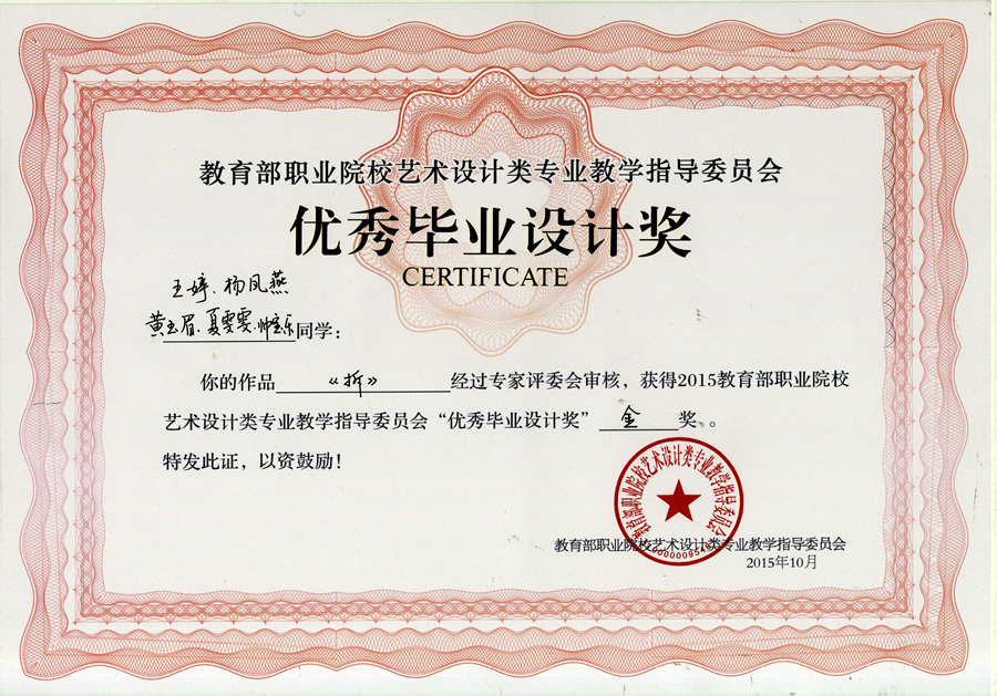 美术系师生作品获2015教育部职业院校艺术设计类专业奖项