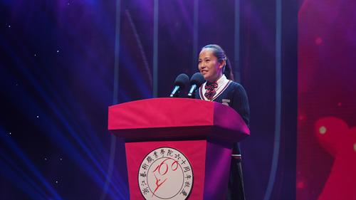 舞蹈系青年教师包峥剡作为学院教师代表发言,讲述了自己从浙艺求学开始一路走来的难忘历程和在浙艺教学期间见证的浙艺学子的骄人成绩,“正是有着那么多可爱的学生们,让我们教师的工作更加意义非凡。正是这样的师生之谊,让我们的校友和母校一起心心相连。”