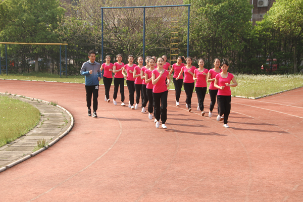 操场上,正在练功的他们,清一色的粉色突出的是年轻青春的心,老师的陪伴也是一种鼓舞