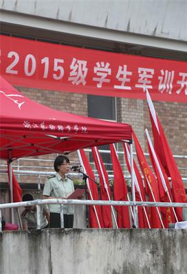 9月15日下午,院2015级高职学生军训开营仪式在操场举行。浙江警察学院学生工作处副处长曹东明、教官代表方杭富,院党委书记、副院长朱海闵,及学院相关系部负责人出席,顾斌主持仪式。