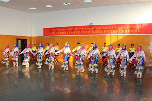 浙江省发改委党组成员、浙江省对口支援办公室专职副主任陈海涛,浙江省文化厅党组成员、副厅长杨越光,浙江省发改委对口支援处副处长骆方豪,浙江省援藏指挥部指挥长、那曲地区行署常务副专员李华,西藏那曲地区文化局副局长、培训班总领队陈毅,浙艺院党委书记朱海闵、党委副书记黄杭娟、舞蹈系主任张星、继续教育学院院长谢青等出席结业仪式。黄杭娟主持结业仪式。承担培训和管理工作的舞蹈系、继续教育学院教师和部分舞蹈专业学生到场观摩。