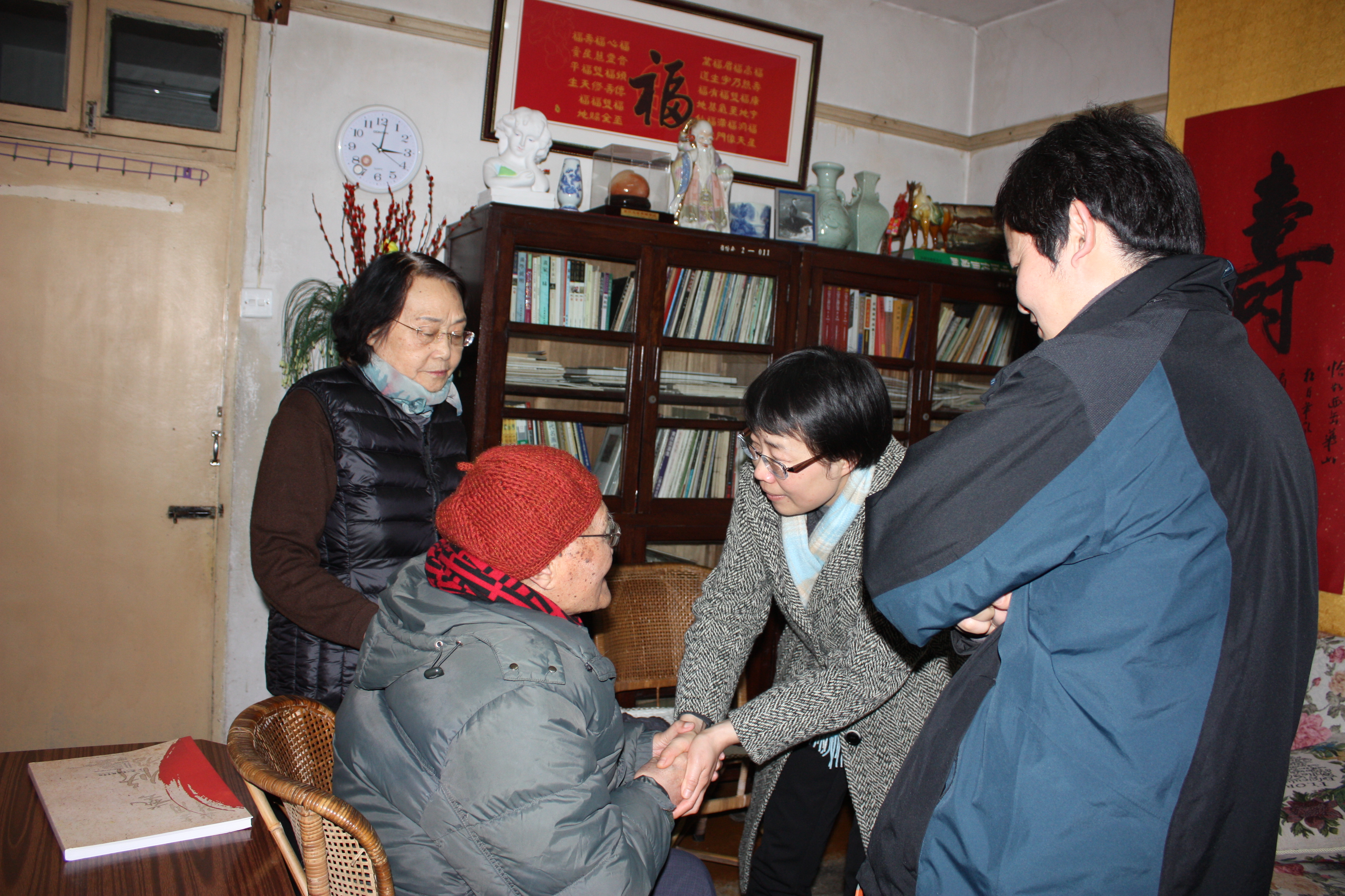 朱海闵、张建国和张西华进行亲切交谈。朱海闵向老校长汇报了学院主要工作、建校60周年校庆等情况,并向老校长赠送了60周年校庆盛典光盘和宣传资料以及慰问品。朱海闵表示,学院有今天的发展成就,是老校长带领浙艺人努力拼搏、开拓创新的结果。当年老校长带领艺校领导班子,广纳人才,引入艺术名家来校传师从教,为浙江乃至全国培养了一大批的文化艺术人才。交谈中对德高望重、桃李满天的老校长表示无限敬仰。
