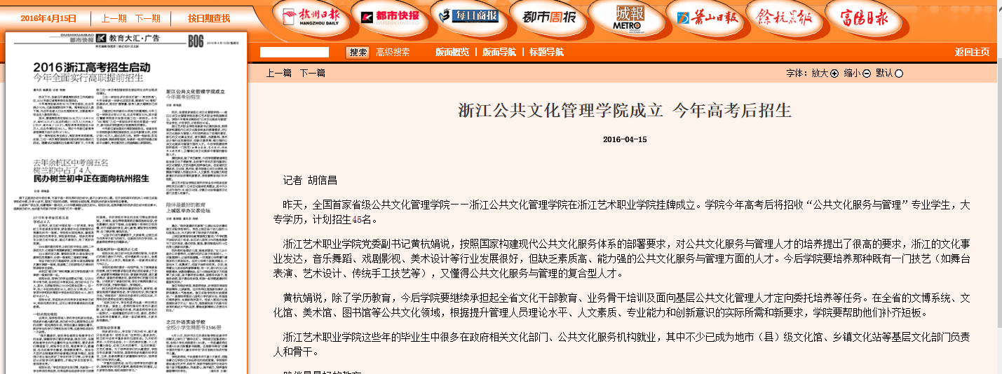 都市快报:浙江公共文化管理学院成立 今年高考后招生