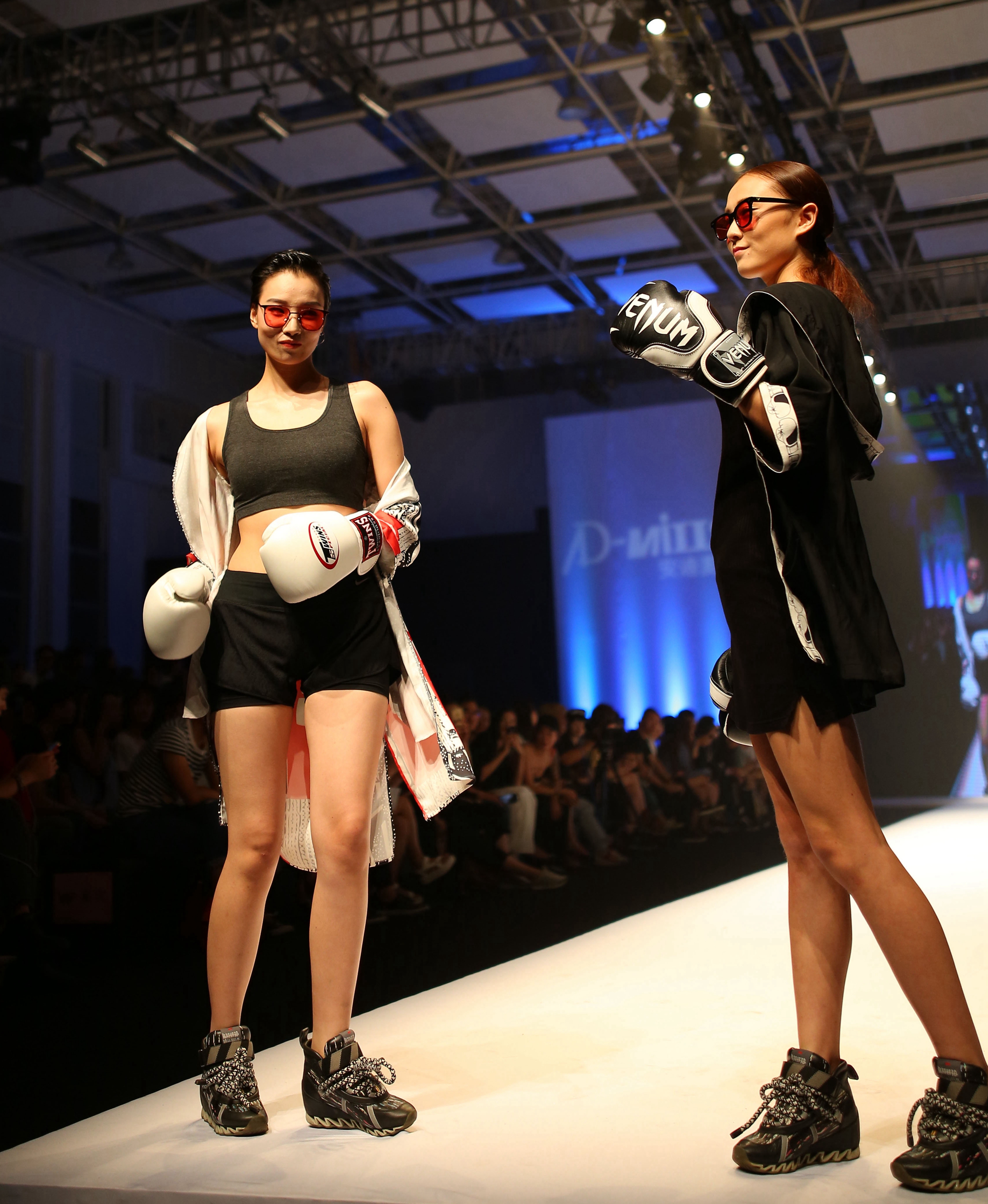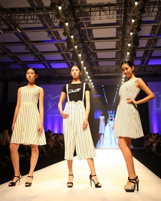 开场,模特们穿着泳装上台,大长腿瞬间吸引了全场目光,手机都举起来了,一刻不停拍着小视频、录直播。侯甜甜、黄瑞津、郑雨桑、洪薇芯、张雪等10位历届优秀毕业生逐一上台展示,每位模特都展示了不同的走秀风格和美丽瞬间。模特们连着展示了不同风格的各种服装,休闲的学生装、前卫的牛仔混搭、小清新的荷叶裙,还有两位豪放派模特戴着拳击手套酷酷地走上前台,亮相时还互相对“打”一拳……音乐慢下来,模特们穿着田园风碎花连衣裙、魅惑的蕾丝裙深情款款地朝观众走来,举手投足间透露出优雅的味道。2013级模特专业学生沈艳婷在台上特别自信,走秀时偶尔带着俏皮的表演,和其他模特之间也有互动。上海国际模特大赛季军邹心悦走台时特别酷特别冷艳,2008级学生张雪亮相时却微微一笑,特别甜美。“哇,她们好美。”台下观众说。