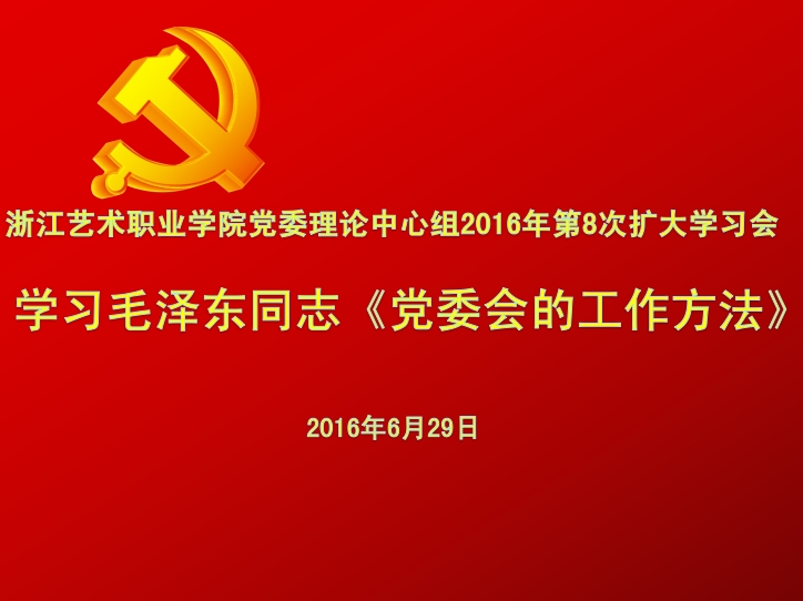 浙艺院党委理论中心组召开2016年第8次扩大学习会 专题学习毛泽东同志《党委会的工作方法》