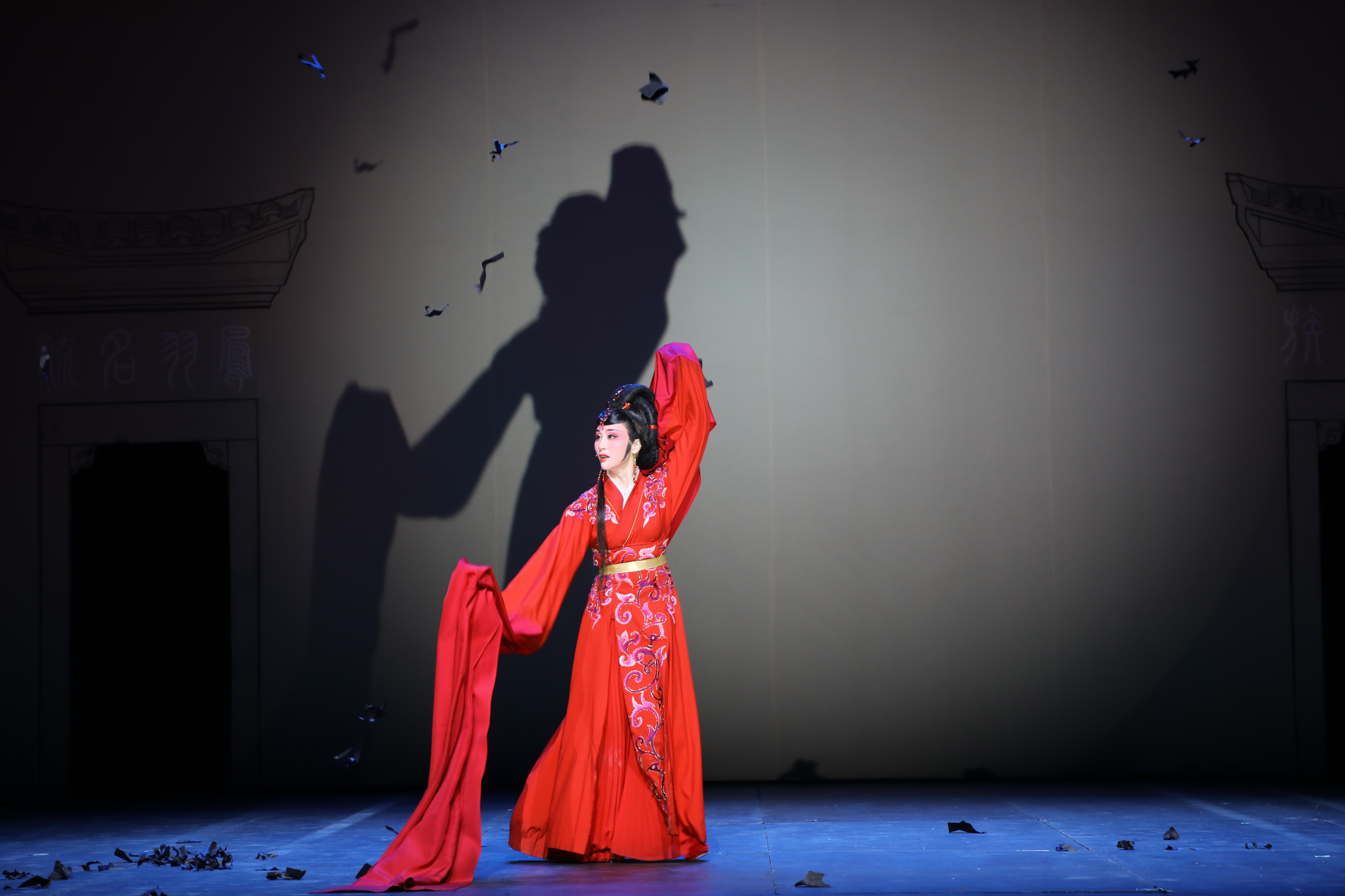 第24届BeSeTo(中韩日)戏剧节仅有的两场戏曲,非常巧合地讲述了两个古代“三角恋”故事。闽剧《双蝶扇》是命运捉弄,一女错嫁,两男谦让,满台好人,一场悲剧;越剧《心比天高》却是好风不给力,女未上青云,对旧情人又气又妒,最后害人害己,血染青锋。都不是传统戏曲印象中的才子佳人,都不是常规戏曲中的女主角,让台下观众耳目一新。《心比天高》女主充满欲望,又爱又恨又嫉妒又不齿自己,内心戏丰富。剧中扮演海达的周妤俊,一袭大红服装夺人眼球,精彩的水袖舞引来观众阵阵掌声。2006年,越剧《心地天高》就最后一段海达的"自杀戏",参演“全球纪念易卜生系列活动”开幕盛典,特别受到了挪威国王与王后的荣誉接见。易卜生的孙子评价,“《心比天高》非常精彩,非常尊重原著精神,是东方戏曲艺术演绎西方艺术大师作品的绝佳之作。”