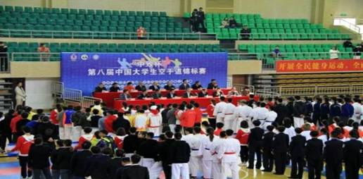 近日,由中国大学生体育协会主办、杭州科技职业技术学院承办的第八届中国大学生空手道锦标赛在杭州科技职业技术学院高桥校区体育馆举行。来自北京体育大学、上海体育学院、武汉体育学院、西安体育学院、香港高等教育科技学院、浙江财经大学、浙江警察学院等45所高校的近460名空手道选手展开了激烈而精彩的角逐。