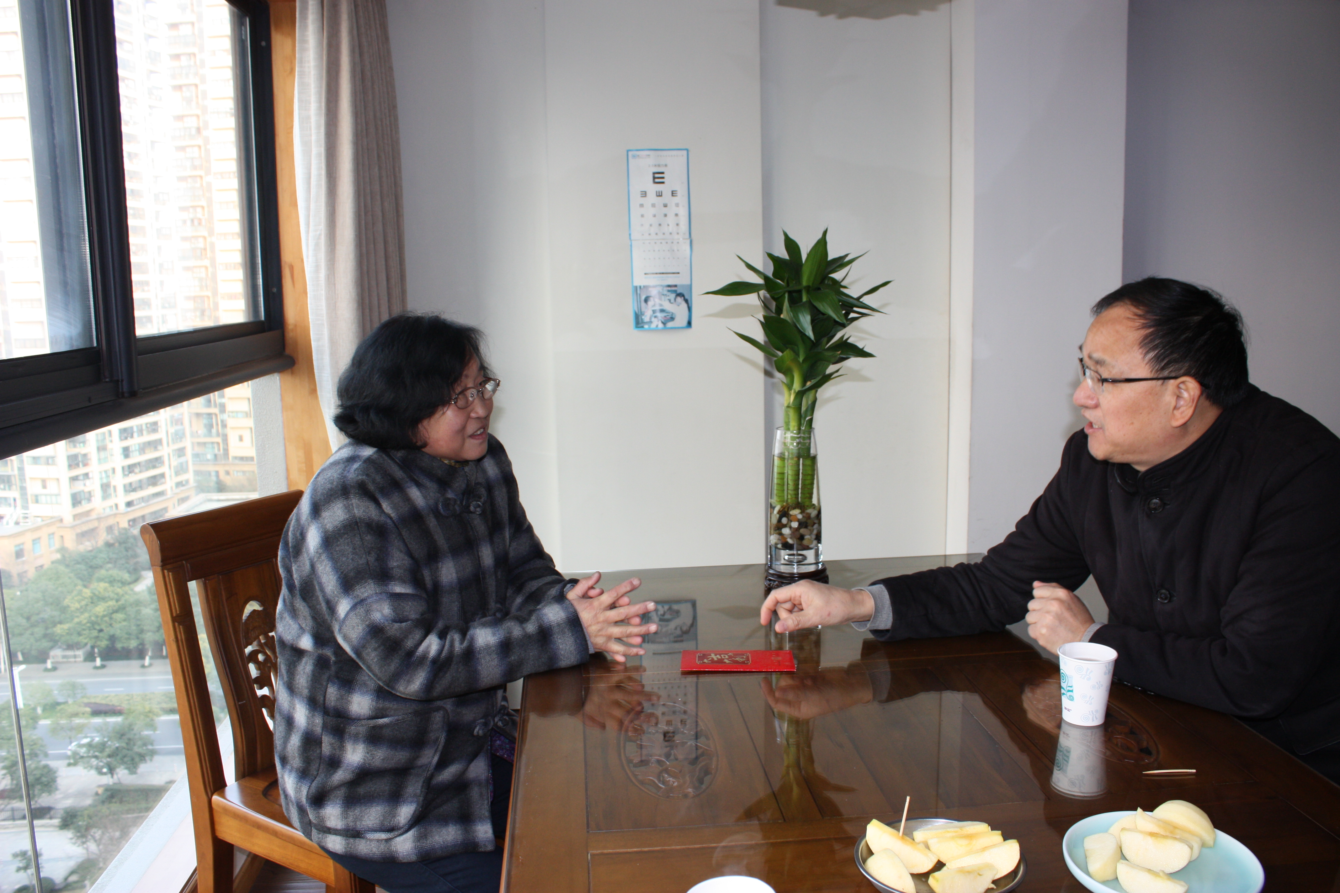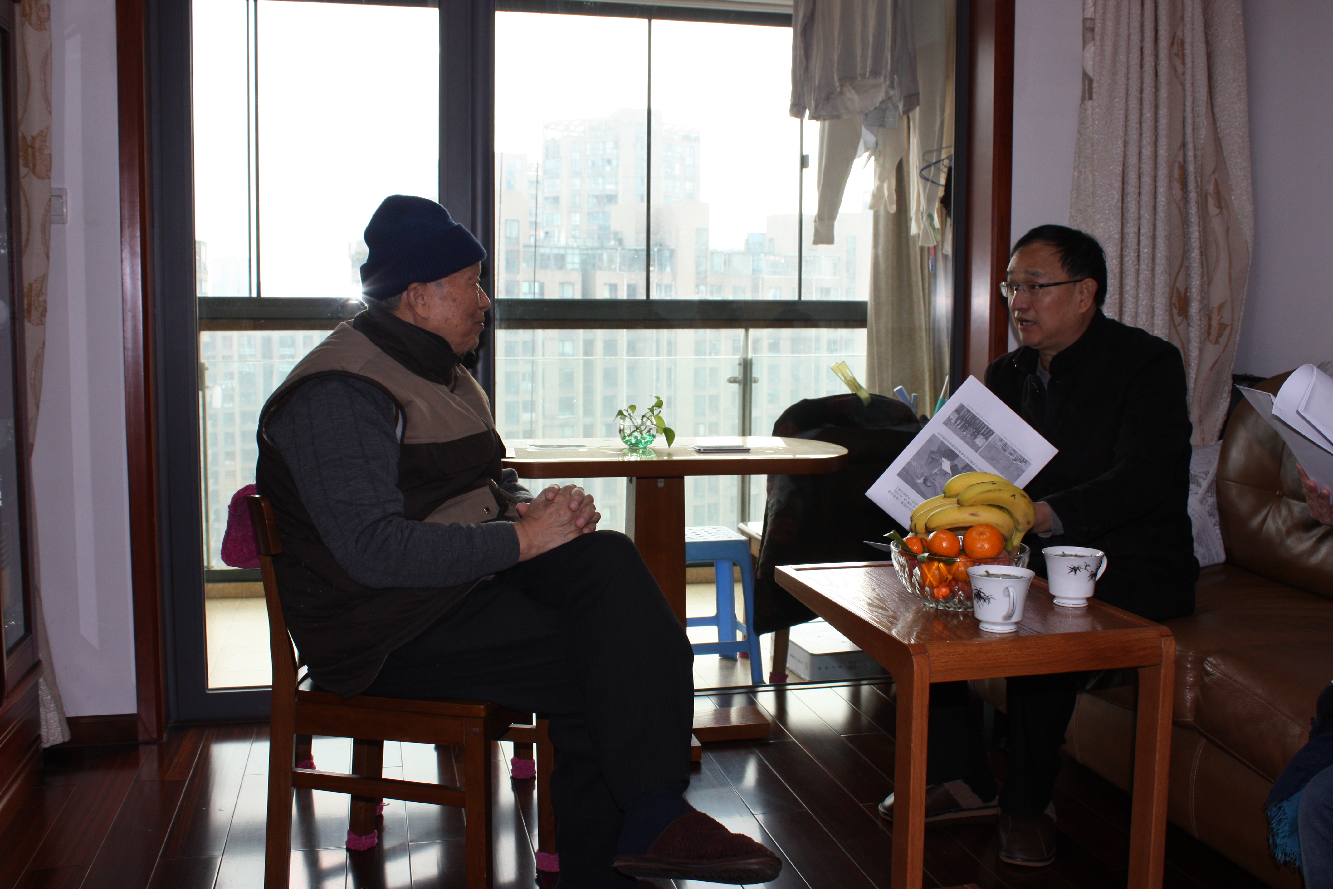 在看望沈凤泉老师时,端木义生恳切地希望他继续发挥专业优势,培养好江南丝竹接班人,希望浙艺鼓励年轻教师和学生参与学习,省文化厅给予政策扶持,通过上下努力共同做好非遗传承工作。沈凤泉表示,学院领导十分重视非遗传承与保护,他多次受邀在学院开设专题讲座,学院还专门设立“沈凤泉工作室”,对此他深感欣慰,表示今后要多为学院做工作。他还就提升青年教师专业素质、非遗传承等方面提出意见和建议。