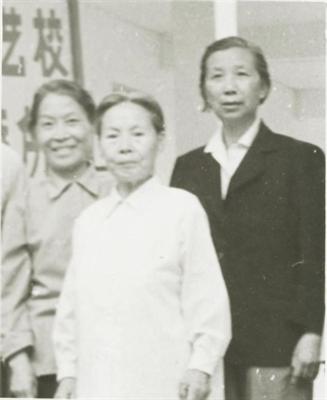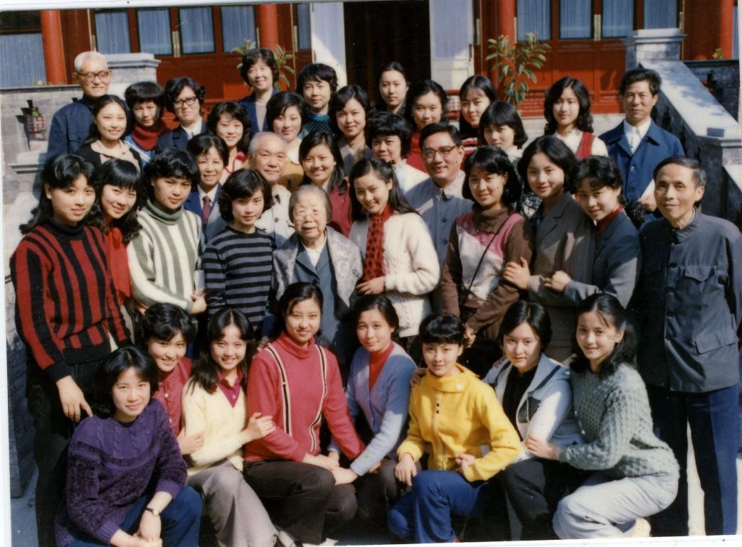张西华校长(后排左一)对浙江小百花越剧团的组建和发展作出了重要贡献,曾和浙江小百花越剧团演职人员一起进入中南海,受到邓颖超同志亲切接见。