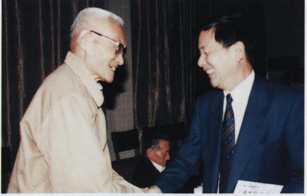 全国人大常委毛昭晰和老校长张西华关心学院建设。