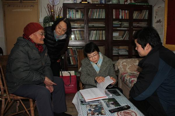 2016年春节期间,浙艺党委书记朱海闵(右二)与时任院长张建国(右一)看望老校长。