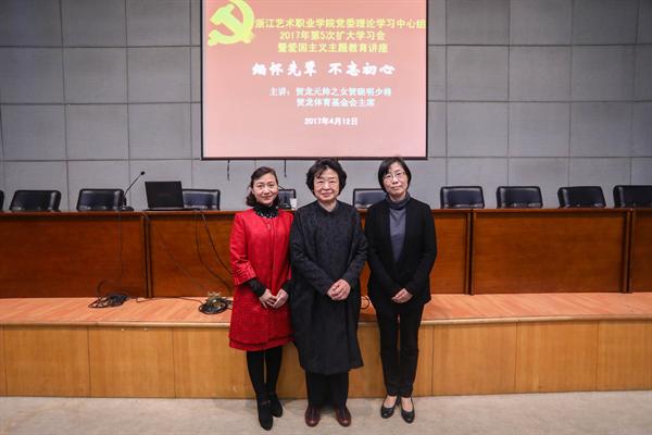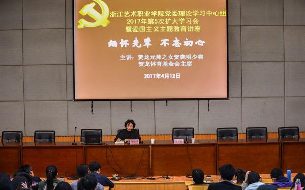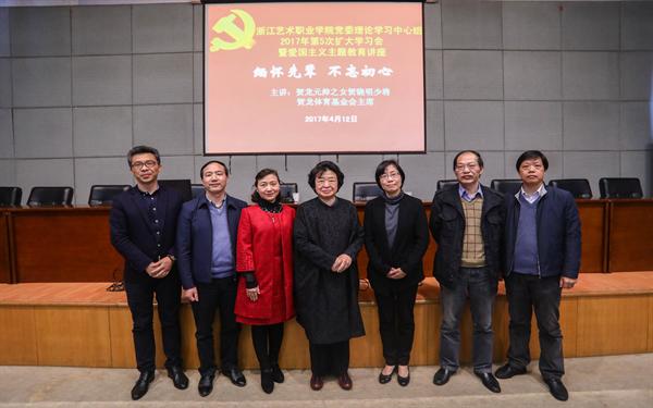 4月12日下午,贺晓明应邀来浙艺党委理论学习中心组扩大学习会作“缅怀先辈 不忘初心”爱国主义主题讲座。学院领导、处科级干部、教职员工、学生党员和第29期党校学员代表等200多人聆听讲座。党委委员、副院长夏开堂主持讲座。