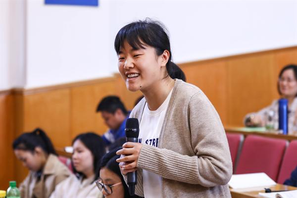 贺晓明用接地气的语言生动回答了师生的三个问题。在回答“如何传承革命精神”时,贺晓明带着我们重走长征路,重温革命历史,重温入党誓词,告诫我们传承要注入自己的东西,要在思想上、语言上、行动上保持一致,同时要增强自信心,要坚持就能取得成功。在回答“如何明确人生的奋斗目标”时,她勉励同学们要认真学习,不但要学习书本知识,还要走进社会的大课堂,去学习和历练。她通过讲述老一辈无产阶级革命家的历史故事,让我们明白要通过努力学习不断提升综合能力。在回答“贺龙元帅的家风家训”时,贺晓明饱含深情地回忆起她的父母和兄弟姐妹,介绍了她的好家风、好家训、好家规,和师生们一同缅怀老一辈无产阶级革命家的崇高品质。