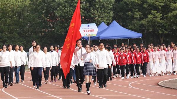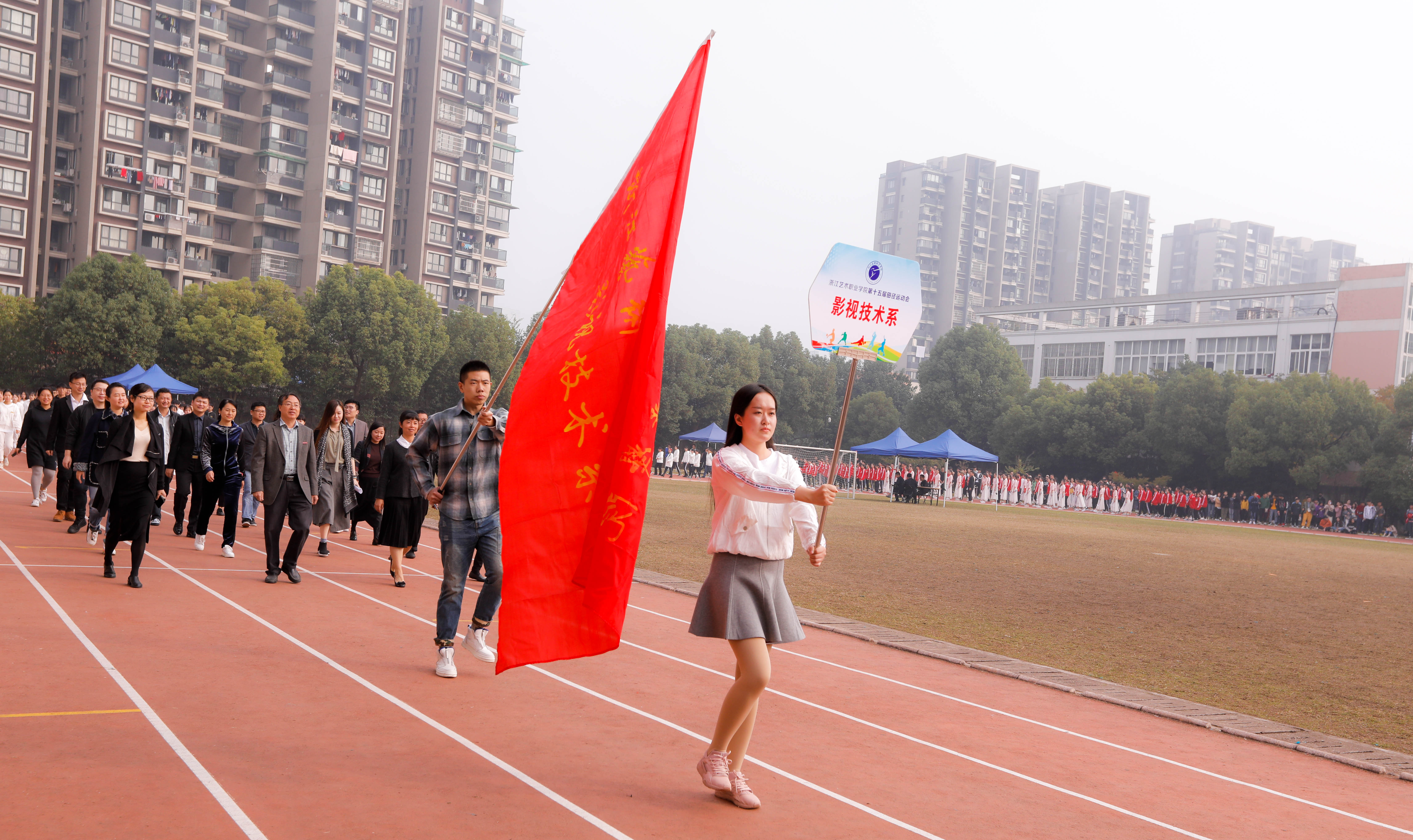 在充满激情的运动员进行曲中,由各系师生组成的代表团迈着整齐一致的步伐迈入田径场,诠释着“全民全运”的魅力。各系的入场表演精彩纷呈,各有特色,美术系的汉服秀彰显中华传统服饰的特色文化,文化管理系的打伞舞将江南女子的温婉气质展现得淋漓尽致,戏剧系、舞蹈系自信展示优雅舞姿,影视技术系以啦啦操舞为赛场增添活力,音乐系同学手上的气球诉说着放飞理想的青春朝气。江南忆,最忆是浙艺,天公作美碧空现,骄儿洒汗壮志酬。