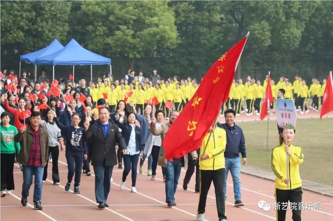 庄严的国歌是运动会的号角,全体师生行注目礼。院长黄杭娟致开幕词。她向此次参与运动会的所有工作人员表示衷心感谢和诚挚问候,预祝运动会圆满成功。她以在第18届亚运会闭幕演出上惊艳亮相的浙艺校友为例,鼓励全体运动员用最佳状态投入比赛,赛出风格,赛出水平,取得运动会成绩和精神文明双丰收。她指出,体育运动是一项体现人的身体素质、道德修养和意志品质等综合能力的活动,相信我们浙艺的学子健儿,不仅能在舞台上奏响动人的乐章,跳出曼妙的舞姿,同样也能在运动场上展现矫健的身姿,在体育锻炼中享受乐趣,增强体质,成为德智体美劳全面发展的社会主义建设者和接班人。