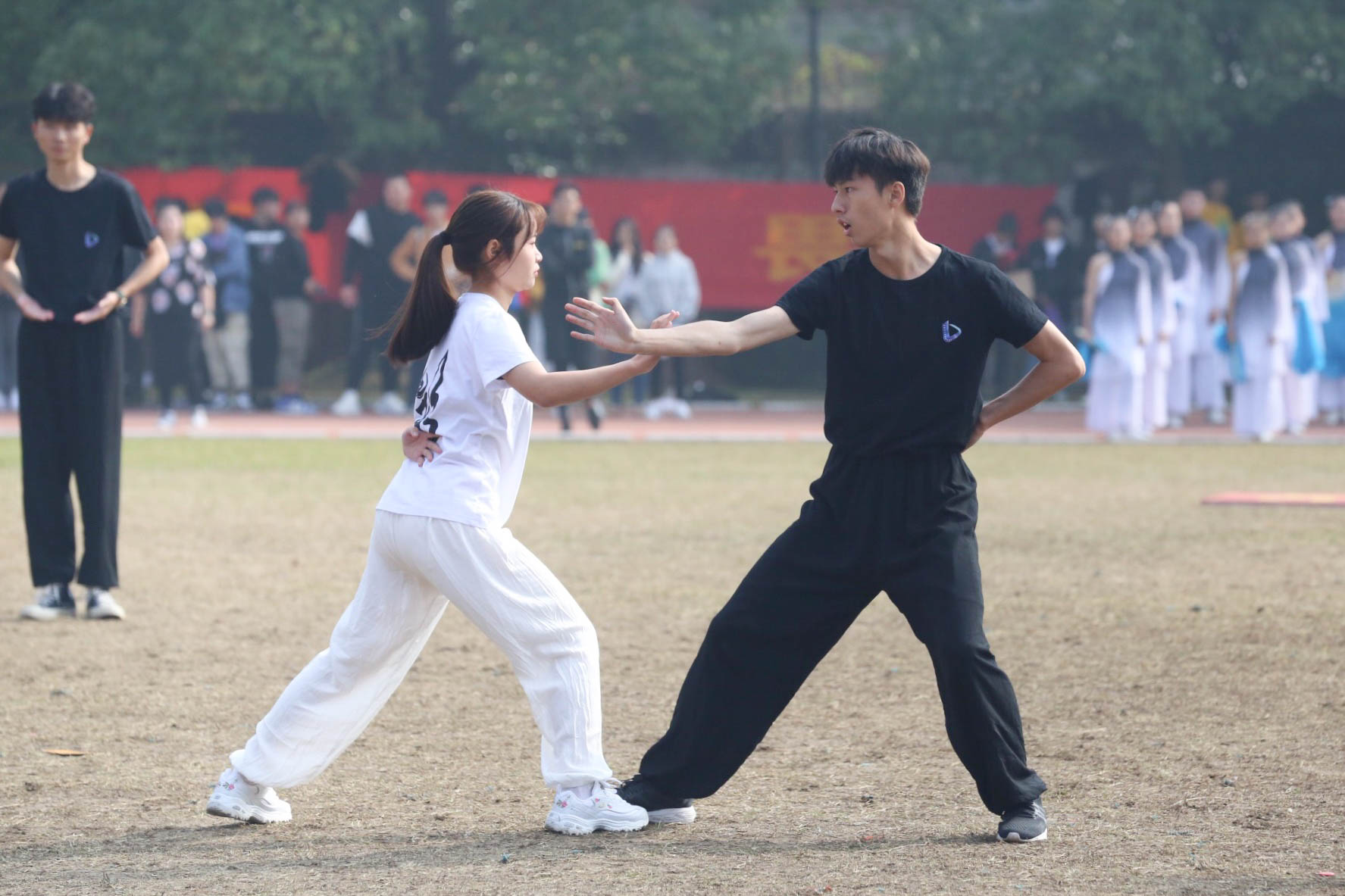 在各系团体操比赛中,各系同学“各显神通”,将艺术体操与优秀传统文化相融合,将红旗、绢扇、彩带、气球融入舞蹈,或刚强活泼,或柔美含蓄。影视技术系以“影”为主题的太极拳舞标新立异,不仅紧扣本系特色,更让人联想到张艺谋导演的《影》中别具一格的水墨中国风,其中太极八卦图上的对武该是本次学子表演灵感的来源。音乐系用青春洋溢的舞蹈,整齐划一的动作,表现他们独一无二的风采。文化管理系的音乐配合同学们的神采飞扬,激情四射。美术系放飞的气球和随风飘扬的国旗颇具视觉冲击力,仿佛那放飞的不仅仅是气球,更是一种希望。戏剧系从一开始的海浪翻涌到后来的红旗飞扬,给了我们一场视觉盛宴。舞蹈系同学们身着水墨色的舞裙,手持精致扇子,用扇舞表现了舞蹈的柔美与华丽。