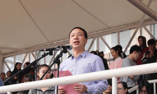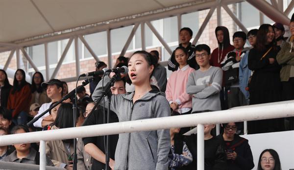 2017级戏剧影视表演班学生俞俊、马佳红老师分别代表运动员和裁判员宣誓。校党委书记朱海闵宣布浙艺第15届田径运动会正式开始。