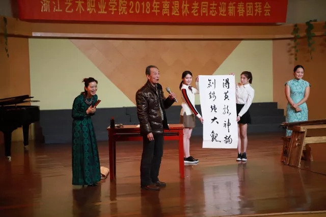今年的离退休老同志团拜会学校作了创新,以歌声讲述好时代,以书画赞美新气象,以舞蹈歌唱青山绿水美丽浙江,共同畅想幸福明天和未来。