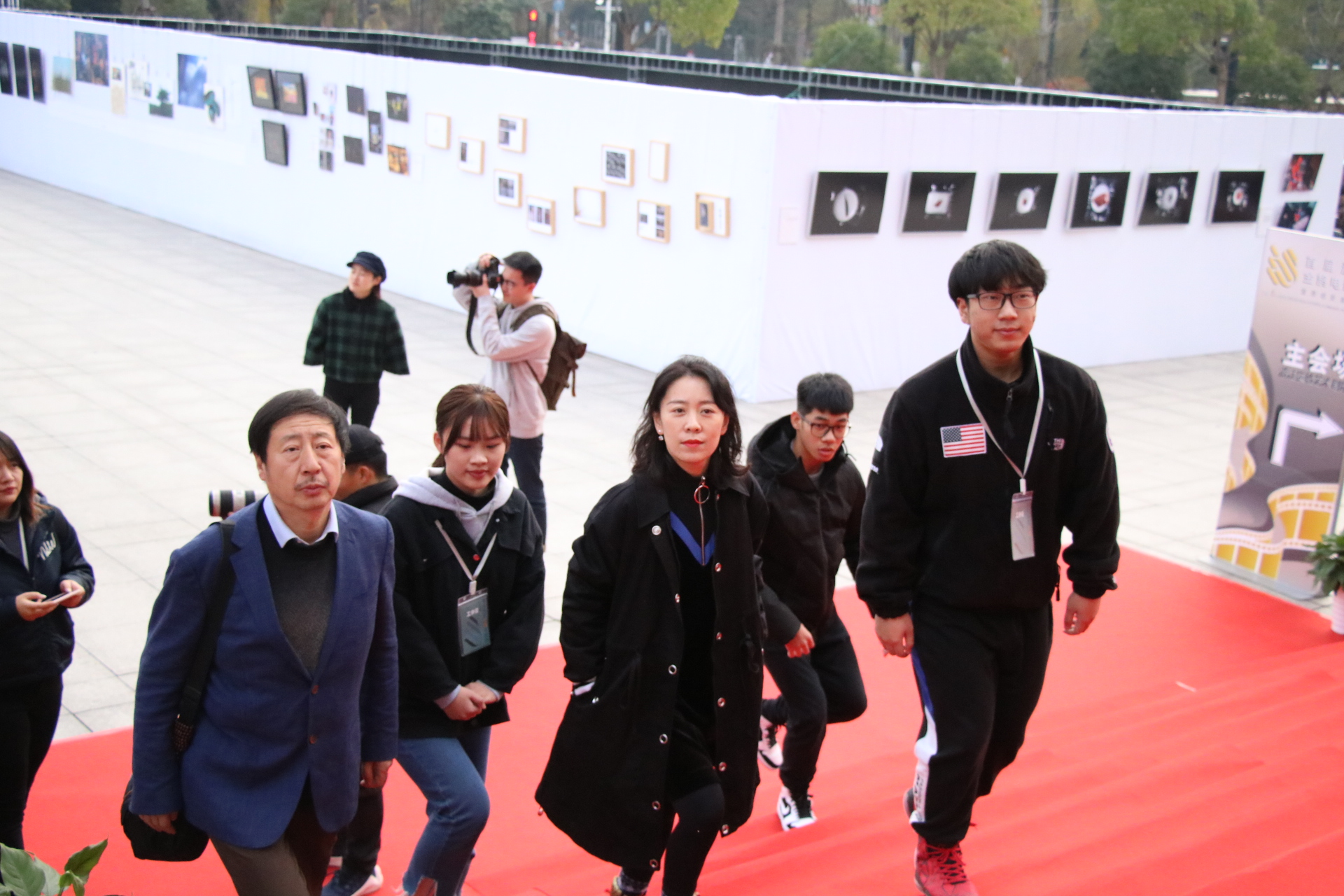 首届浙艺金鹄电影节暨原创影像大赛颁奖典礼分为“走红毯送祝福”“获奖感言分享”“嘉宾颁奖”三个环节。走红毯送祝福”环节,主持人随机对到场的嘉宾进行了采访,嘉宾纷纷为“金鹄”展翅送出了美好祝福。在“获奖感言分享”环节,各个单元的获奖选手将收获荣誉的心情第一时间与大家分享,短片单元《地面秃鹰》的导演——来自台湾东方设计大学的吴政修同学从台湾发来获奖感言,他在视频中感谢金鹄电影节给予他与他的创作团队一次证明自己的机会,并勉励与他们一样正在创作路上前行的团队,一定要坚持下去,只要坚持创作总有一天会被人看到,会发光发亮。