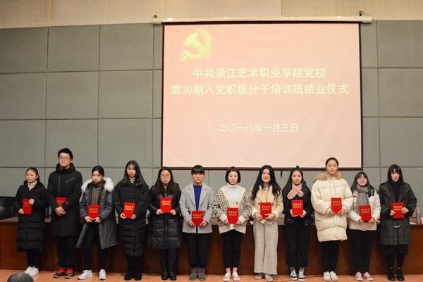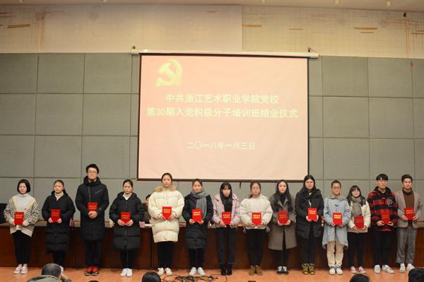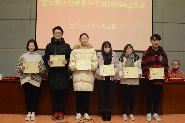 经过考核,第30期入党积极分子培训班评选出14名优秀学员,分别是戏剧系徐思寒、赵金燕,音乐系黄逸宁、龙丽萍,舞蹈系王文如、陈苗苗,美术系杨雪情、廖佩瑶、吴雅婷,影视技术系施欣南、沈佳、杨艺倩,文化管理系刘有成、莫李波;评选出12名优秀论文获得者,分别是戏剧系寿琳砚、尹心慧,音乐系黄爽、周汉楚,舞蹈系陈昱彤、任苏婕,美术系廖佩瑶 、周慧敏,影视技术系李涛、张雅迪,文化管理系刘心怡、洪依琪;美术系、影视技术被评为优秀班级,美术系钱玉玲和影视技术系沈霄媛被评为优秀班主任。