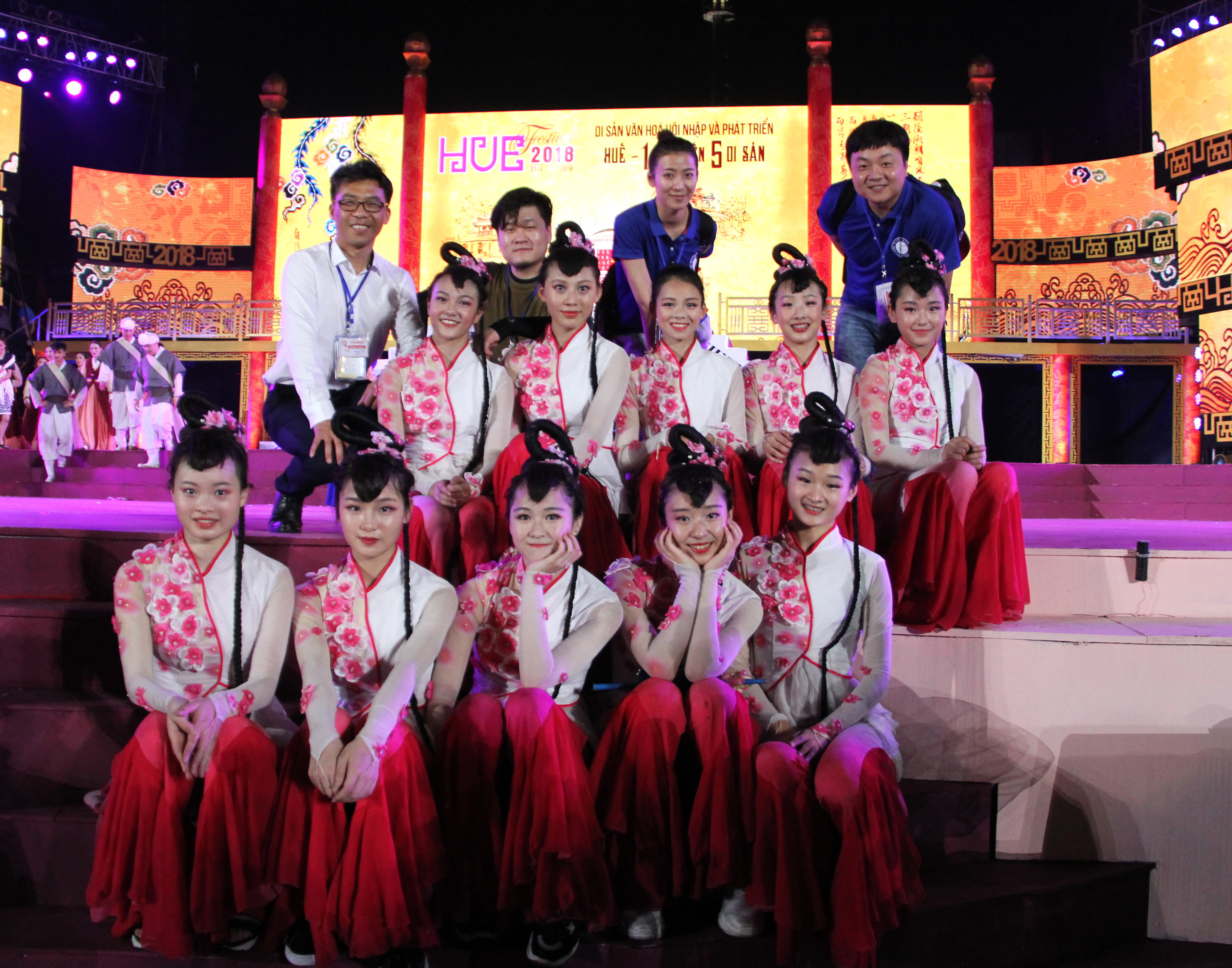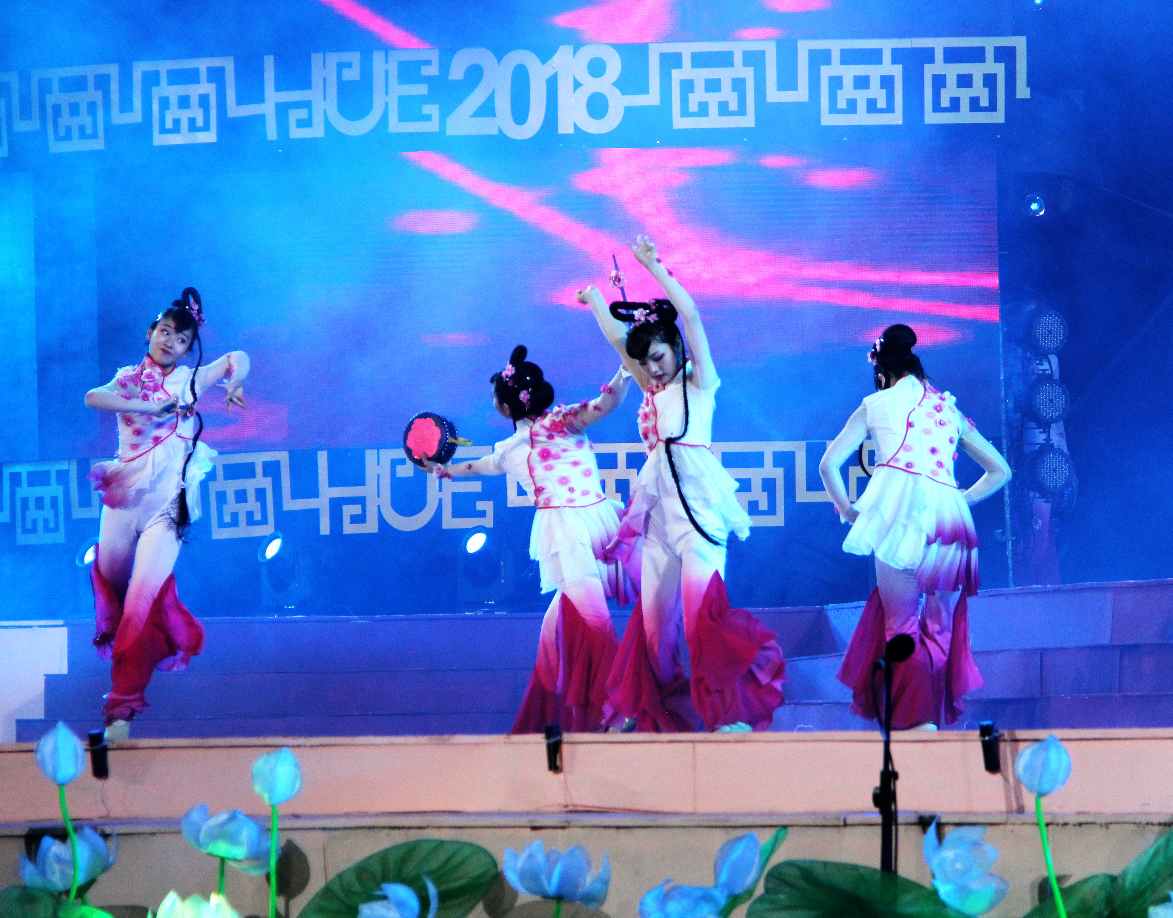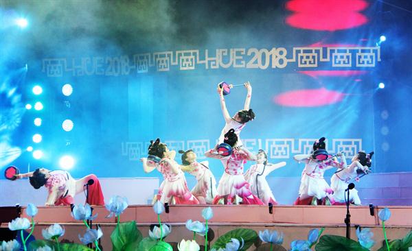 人民网越南顺化4月28日电 (记者 刘刚)当地时间4月27日晚,第十届越南顺化艺术节开幕式晚会在顺化皇宫举行。中国艺术团表演的舞蹈《花鼓声响花开处》惊艳亮相,赢得喝彩。