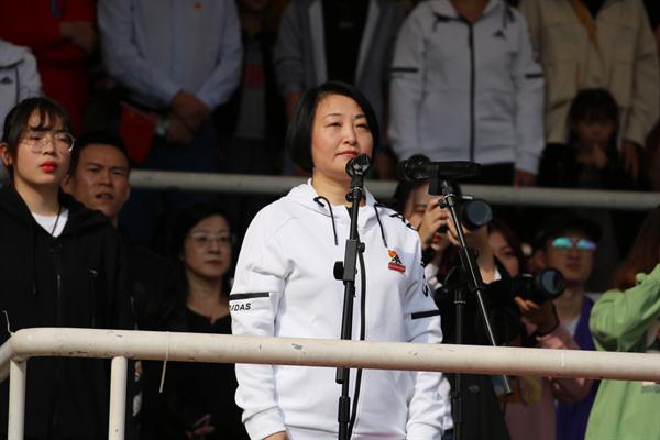 校党委书记朱海闵致开幕词,她代表校党委领导班子祝贺运动会召开,为所有运动员、裁判员加油鼓劲,弘扬体育精神,展示浙艺风采。去年全国教育大会上,习近平总书记对培养德智体美劳全面发展的社会主义建设者和接班人提出要求:要树立健康第一的教育理念,开齐开足体育课,帮助学生在体育锻炼中享受乐趣、增强体质、健全人格、锤炼意志。在会见载誉归来的中国女排教练员、队员代表时,习近平总书记指出,广大人民群众对中国女排的喜爱,不仅是因为你们夺得了冠军,更重要的是在赛场上展现了祖国至上、团结协作、顽强拼搏、永不言败的精神面貌。女排精神代表着一个时代的精神,喊出了为中华崛起而拼搏的时代最强音。这就是体育精神的真谛,也是我们在竞技场上所应该体现的精神风貌。近年来,我校坚持把体育教育作为增强师生体质的重要载体,积极开展各项体育活动,取得了优异成绩。希望这次运动会全体运动员能以最佳状态投入比赛,赛出风格、赛出水平,同时遵守体育道德、竞赛规则,尊重裁判,尊重观众,取得运动成绩和精神文明双丰收,希望全体师生为运动员们加油、喝彩,让体育成为大家健康、快乐生活方式的一部分。