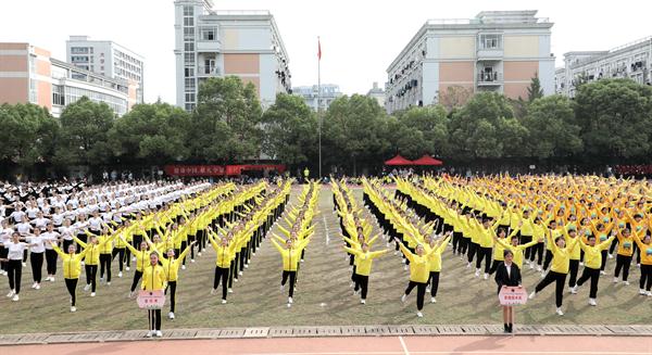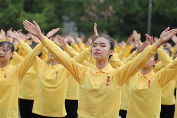 广播操比赛中,各系学生展现出蓬勃向上、团结一致的精神风貌,各系学生动作整齐划一、规范有序,展现出浙艺青年的青春活力。