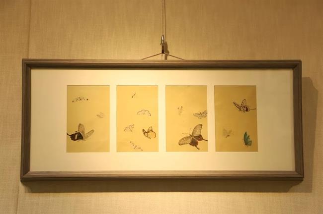 我们把人文景观作为切入点,在绢上绘制以山水一角、花鸟神态和最贴近人文生活的蔬菜瓜果。绘画完成后,我们运用绢丝装裱技艺,全面展示绘画对象的细节,体现了我们对杭州游观品味四体合一的理解。