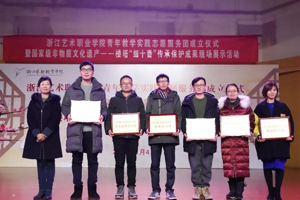 大会表彰了2018年国家级非物质文化遗产——楼塔“细十番”传承保护工作优秀团队、先进个人,音乐系分团、影视技术系分团、文化管理系分团获“优秀团队”荣誉,青年教师赵瑾、常轶伟、祝杭红、张凌、卢伟、段廉、夏金瓯、宋煜获“先进个人”荣誉。浙艺青年教学实践志愿服务团代表、浙江省文化志愿服务“最美志愿者”、音乐系青年教师卢伟作志愿服务经验分享。