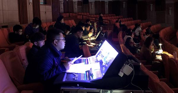 下午至晚上则是细致地走台。在舞台表演中,舞台不是演员一个人的方阵,它还是灯光师的秀场,调音师也在其中不动声色地付出。舞台上光彩夺目地视觉呈现,演员起承转合的唱腔,都离不开一遍又一遍地演练,灯光师的打光跟光以及用光调度,演员的舞台走位以及佩戴麦的种类都需要灵活处理,一遍遍走过,各部门不断协调尝试,才能呈现舞台最佳视听效果,观众才能最大限度地享用那一场视听盛宴。
