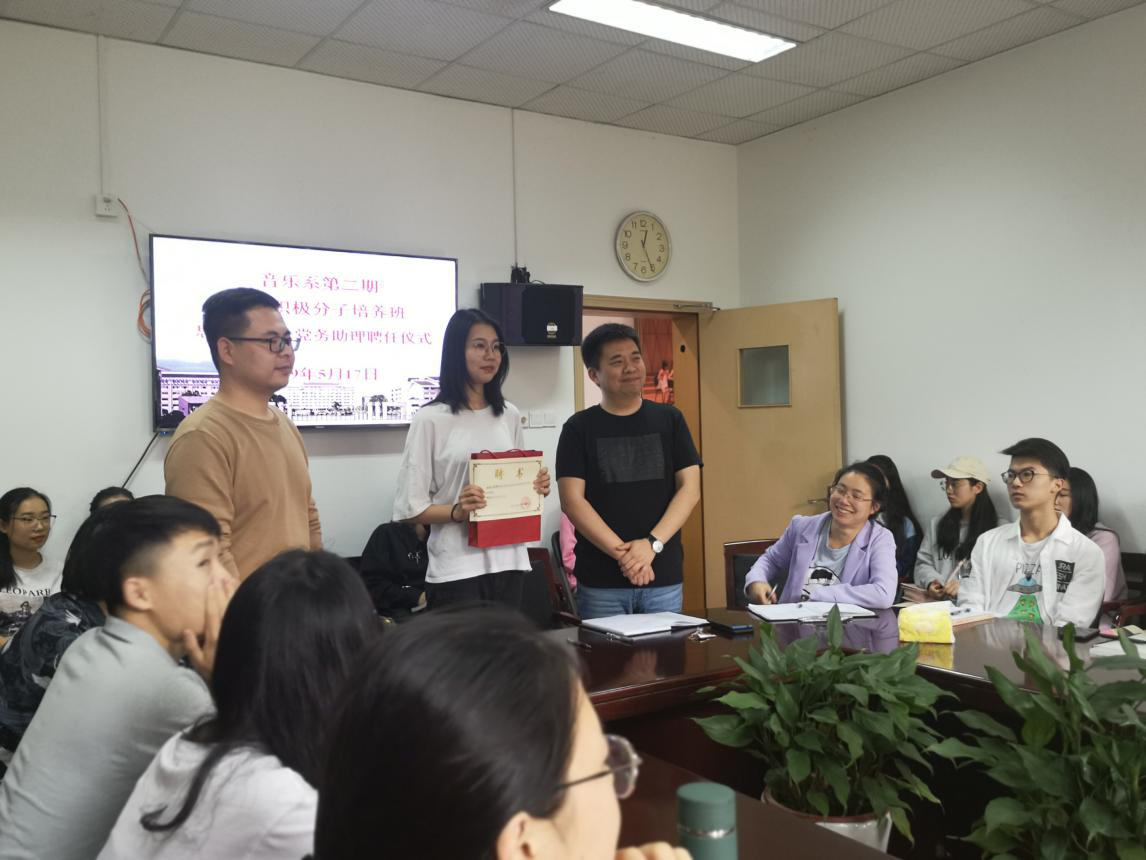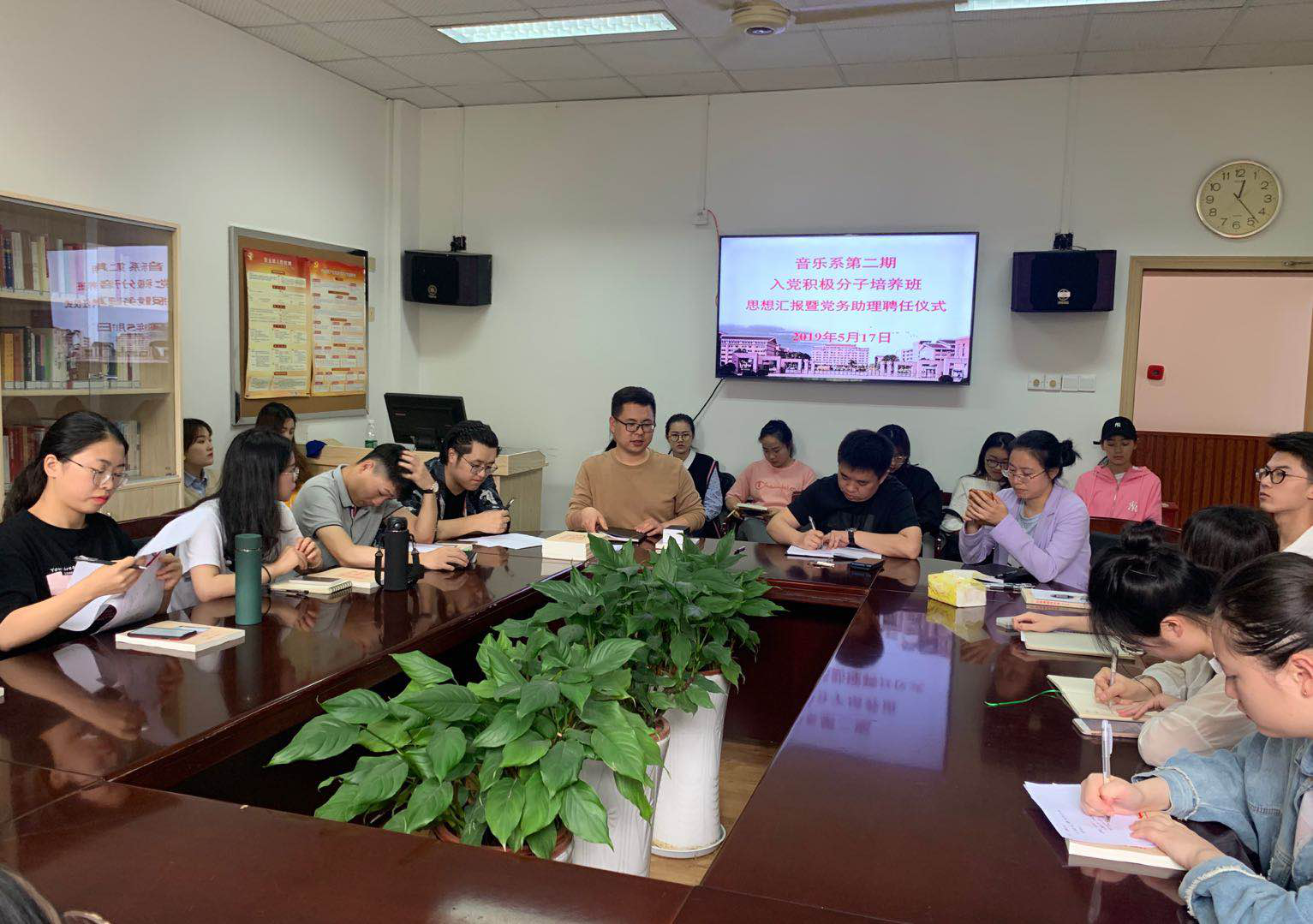 主题党日活动现场还进行了音乐系党务助理聘任仪式,对2019年上半年党员发展对象进行了民主评议。