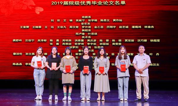 院长黄杭娟真情致辞。她说,我们在这里共同见证956名毕业生完成学业踏上新的征程。同学将会成为登台表演的闪耀明星,有将成为艺术设计领域的优秀人才,有会成为卓越的幕后策划传播人才,有会成为民族文化传承的中坚力量,还有同学会成为现代公共文化服务体系的建设贡献者……无数的可能展现在我们面前,愿同学们不忘初心,坚定梦想,砥砺前行。