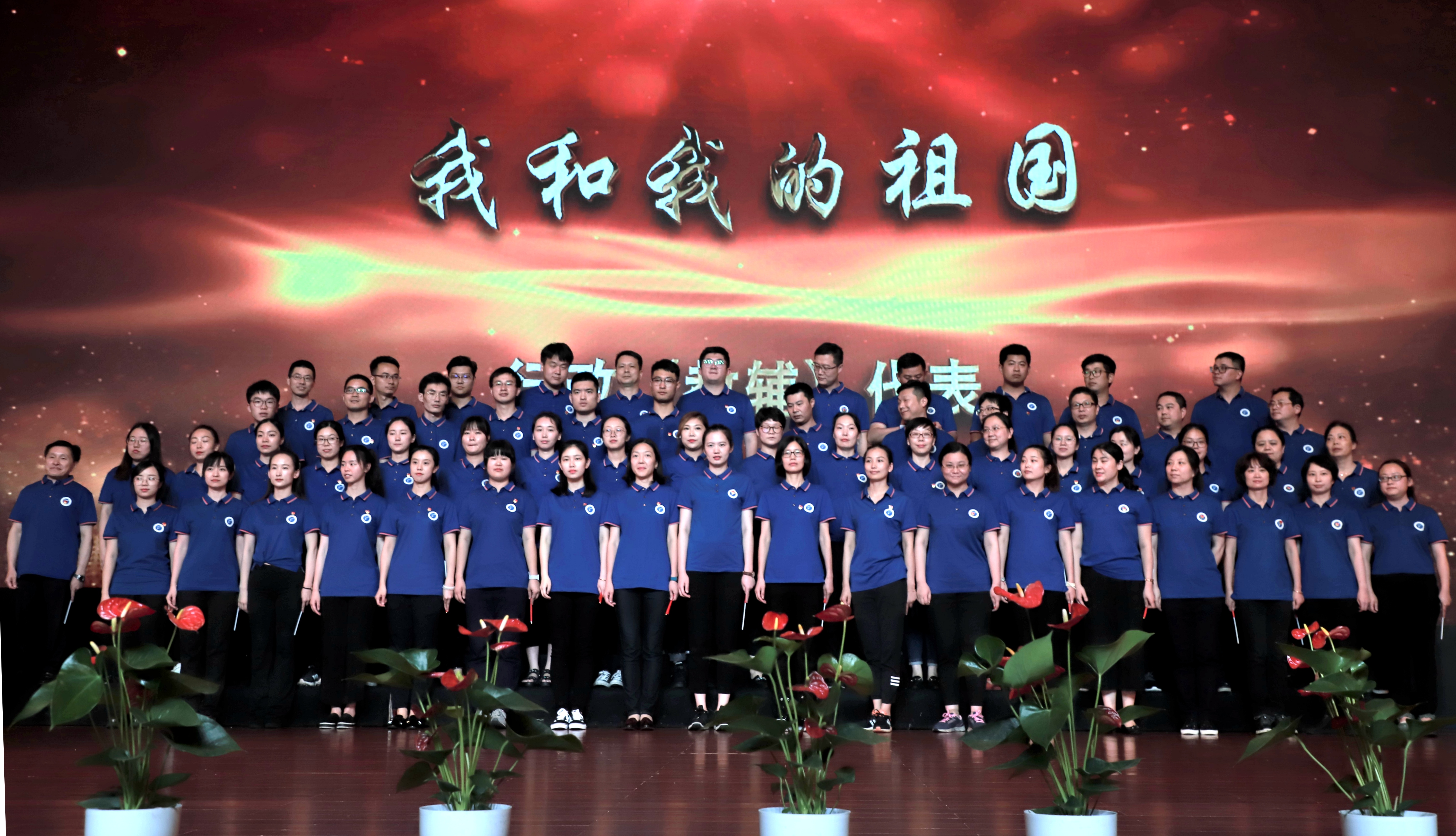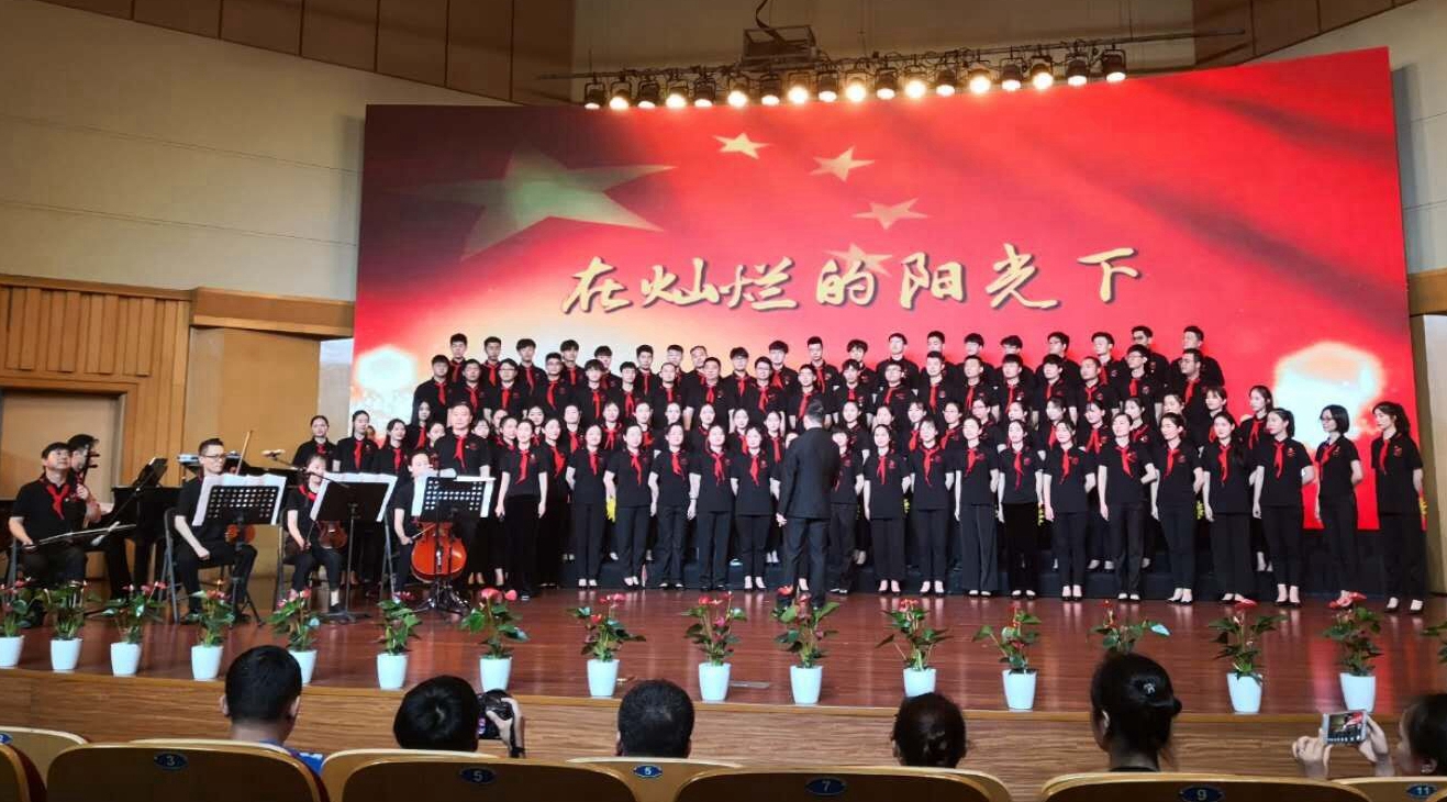 文化管理系合唱团带来的是《中国,中国,鲜红的太阳永不落》。他们坚定有力的歌声抒发着爱国情感,祖国是华夏儿女以生命铸就的太阳,照耀在心中永不坠落。基础教学部、社会科学部和继续教育学院联合合唱团带来的是改编版《年轻的朋友来相会》,这支队伍中有勤劳的60年代浪漫的70年代时尚的80年代,他们在朗诵中追忆时代变迁,在歌声里抒发建功新时代壮志。行政、教辅部门合唱团的曲目《我和我的祖国》,著名歌唱家陈芬芳的领唱收获了全场热烈的掌声,熟悉的旋律响起,观众席很多人跟着轻轻地应和,歌声回荡在每一位观众心中。