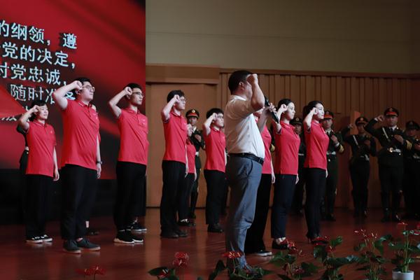校党委委员、组织部(统战部)部长王涛领誓,带领全体党员重温入党誓词。