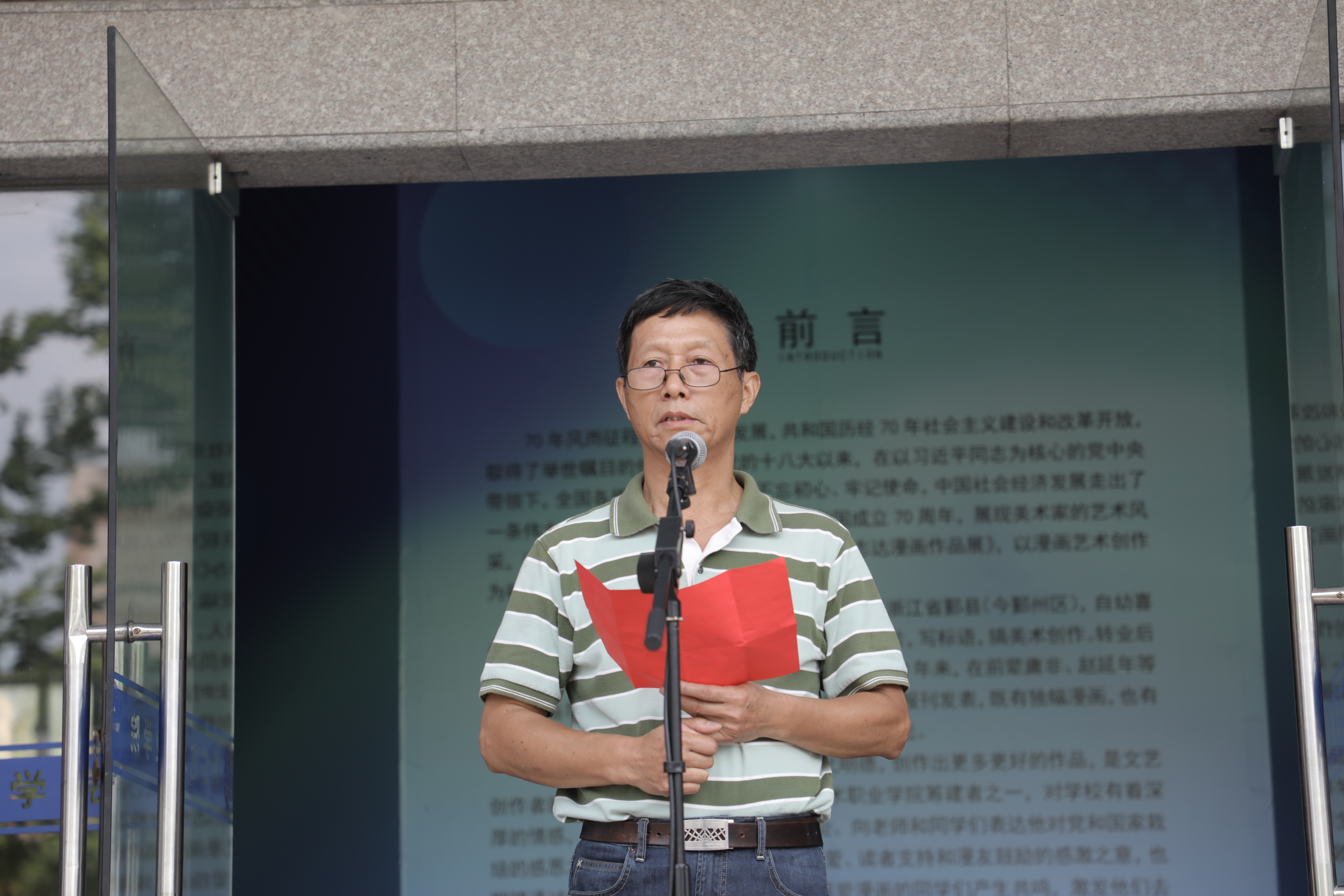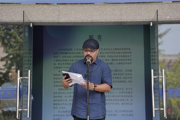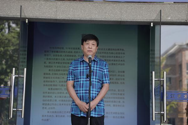 俞志达发表感言说,作为新中国的同龄人,俞志达感谢党的培养、祖国的培育。对学校、业内人士和亲朋漫友对展览的支持表示了谢意。他表示会继续努力,不断创作。祝愿祖国更加繁荣昌盛,早日实现伟大复兴。祝愿浙艺越来越好,培养出更多有高超技能的应用型艺术人才。