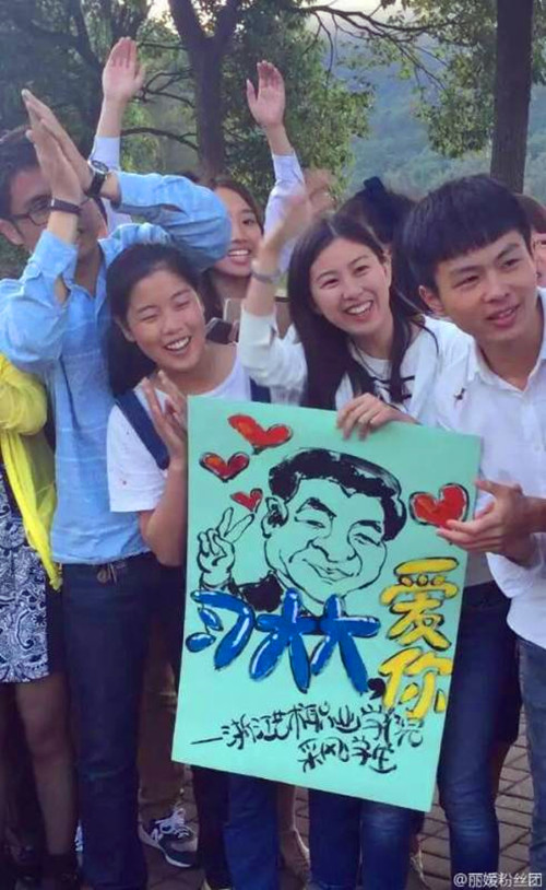 朱海闵代表学校向参加开幕式的画界前辈、漫画名家表示热烈欢迎。她介绍了浙艺60多年来的发展情况和办学成就,回忆习总书记赞扬浙艺美术专业学生的故事。2015年,习近平总书记在新建社区南洞艺谷参观社区群众艺术创作中心、观看村民创作渔民画时,适逢我校美术系学生在当地采风。得知要见到总书记,同学们十分激动,张梦之、池佳妮、杜昌晨3名同学即兴绘了两幅肖像漫画送给总书记,画中写下“总书记,辛苦啦”等文字。习总书记在接见群众时与浙艺师生亲切握手,并赞扬“画得不错”,一时传为美谈,深深鼓舞了浙艺师生。当时央视新闻联播和浙江卫视多次报道,并来学校采访学生。