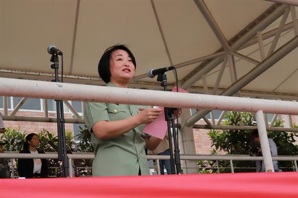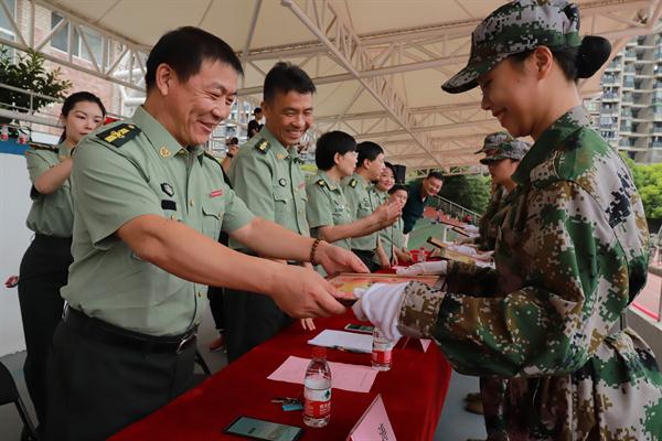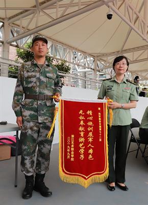 支涛作讲话。她代表学校向中国人民解放军某部队的全体教官表示了衷心感谢,向参训的全体同学表示慰问。她希望同学们在大学生活中,把个人梦融入中国梦,实现人生价值。在学习生活中能够秉承“求真 尚美 精艺 修为”的校训,勤奋学习,锐意进取,踏实做人,做一名德智体美劳全面发展的浙艺人。