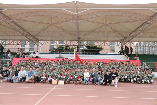 夏开堂宣读军训先进个人和先进集体名单,对新生进行了检阅。