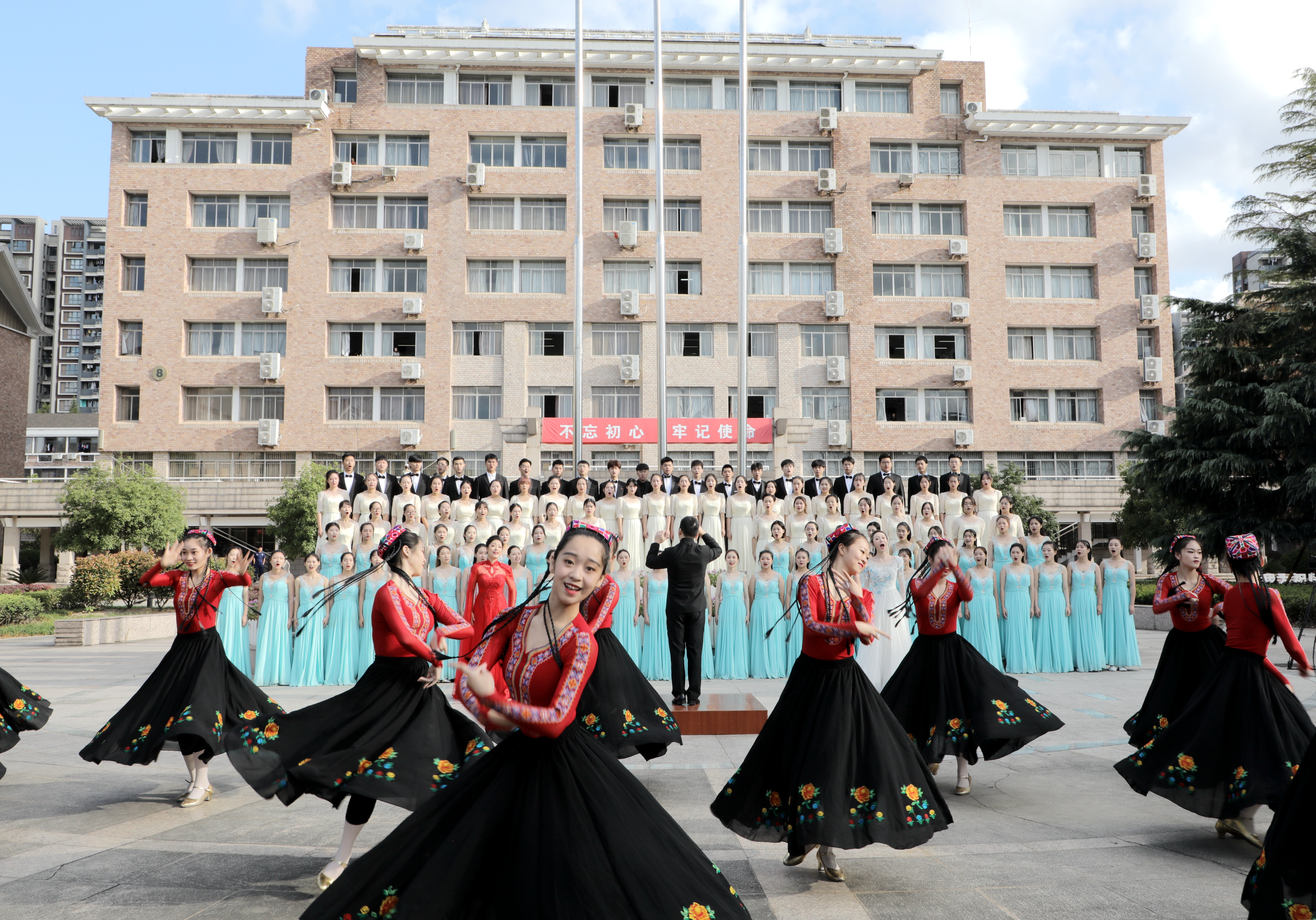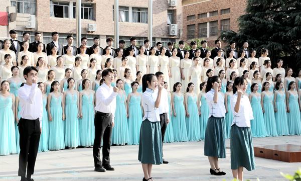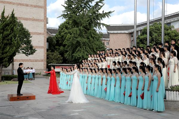当前,正值新学年新生报到期间,为激发新生的爱国情怀,9月19日,在新学期举行第一次升旗仪式之际,组织拍摄了青春快闪《我和我的祖国》,用歌声礼赞新时代。中专、高职新生代表和学校党员教师400余人以行动擦亮初心,告白祖国。快闪活动的组织、策划、演出、拍摄、后期制作等,全部由学校师生完成,充分展现了学校形象和学子的朝气蓬勃,教育引导广大青年学生扣好人生第一粒扣子,立志听党话跟党走;教育引导全校党员干部坚守初心、勇担使命,始终保持斗争精神,知重负重、迎难而上。