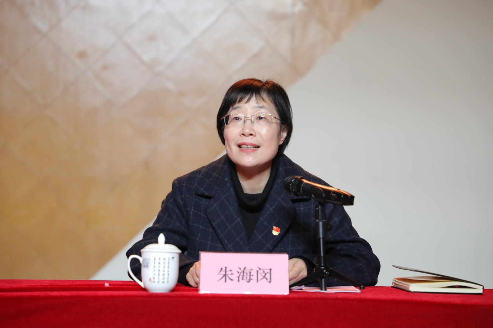 会上,朱海闵从“强化质量导向,深化细化实化主题教育举措;强化效果导向,聚焦聚神聚力主题教育目标;强化执行导向,抓实抓常抓长主题教育制度”3个方面进行了总结。她指出,学校全面对标中央精神和省委要求,在省委第十四巡回指导组的精心指导下,始终聚焦“不忘初心、牢记使命”主题,坚决落实守初心、担使命,找差距、抓落实的总要求,强化“三个地”的责任担当,做到“四个注重”,把“四项重点措施”有机融合、贯穿全程,注重突出艺术院校鲜明特色,推动主题教育有力有序有效开展。一是紧扣主题主线,做到深学细悟,把“学习教育”贯穿始终。学校利用习近平总书记在浙江工作时给浙艺建校50周年发来的贺信等宝贵资源,创设“艺”心向党等红色教育载体,以上率下、层层推动强化组织领导督学,推动广大师生在主题教育中激发出的爱国情砥砺为强国志、转化为报国行。二是紧贴工作实际,坚持学研结合,把调研解难贯穿始终。校党委班子和二级教学单位把解决问题、推动工作作为调查研究的出发点和落脚点,通过深入调研摸清情况、厘清问题,提出对策措施。三是紧盯差距短板,坚持从严从实,把检视问题贯穿始终。以正视问题的自觉和刀刃向内的勇气,找准差距不足,深刻剖析根源,纵深推进自我革命。四是紧抓整改整治,坚持真改实改,把整改落实贯穿始终。校党委加强对办学治校重大问题的研究,对接建设文化浙江诗画浙江、促进文旅深度融合要求,瞄准打造高职艺术教育“浙江样本”、提升“双高”建设水平目标,抓住影响制约学校发展的难点堵点问题推进整改。
