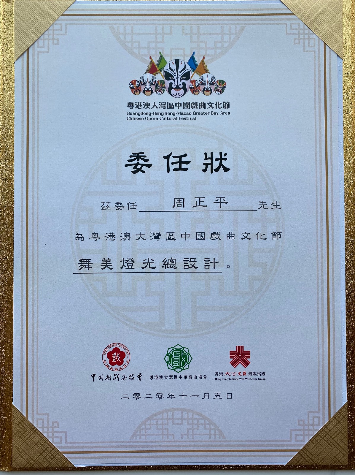 11 月 5 日至 9 日,首届粤港澳大湾区中国戏曲文化节在澳门举行,来自京剧、昆剧、豫剧、粤剧舞台上的 400 多位戏剧家和演员云集澳门,共同演绎中国戏曲的精髓和魅力,为澳门戏曲爱好者和市民奉献精彩的戏曲文化视听盛宴。作为中国舞台美术学会副会长,我校美术系首席专家周正平应邀担任本次戏曲文化节的舞美灯光总设计师、粤港澳大湾区中华戏曲协会副主席,让中国戏曲的艺术之光在粤港澳大湾区的上空闪耀。