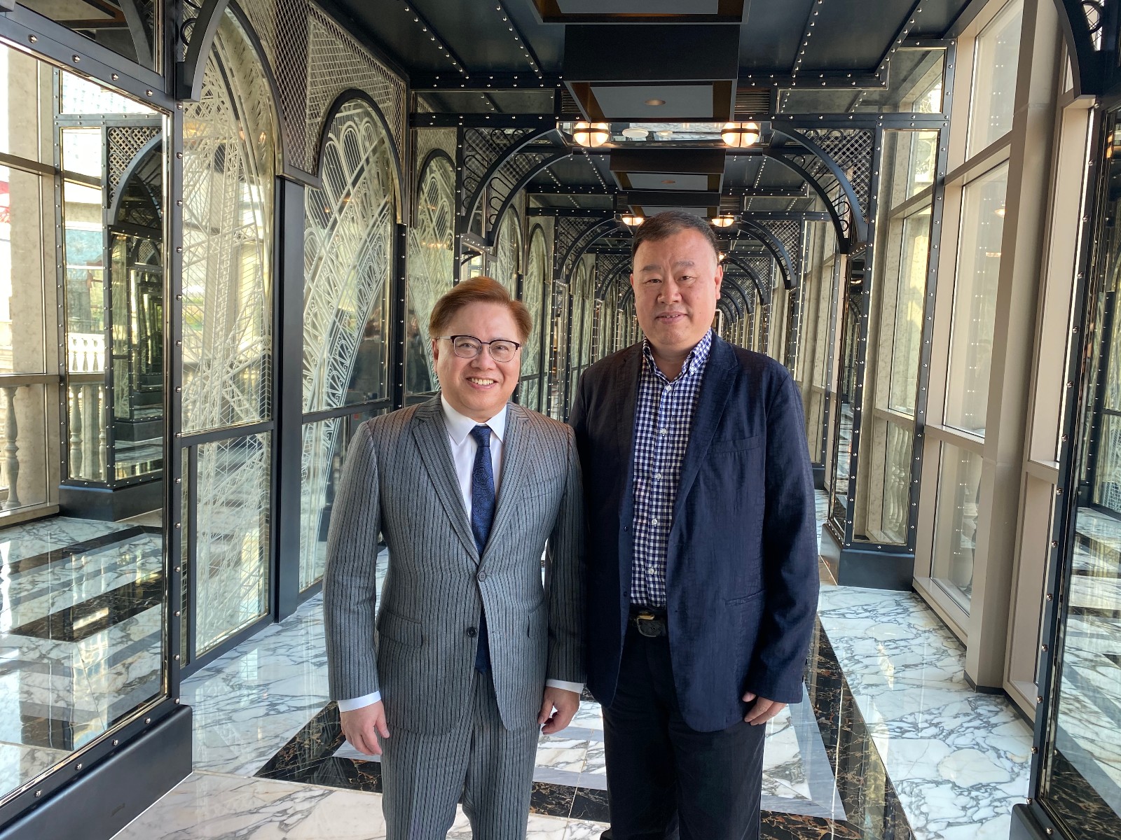 ▲周正平与香港艺术发展局主席、金沙中国有限公司总裁王英伟(左)