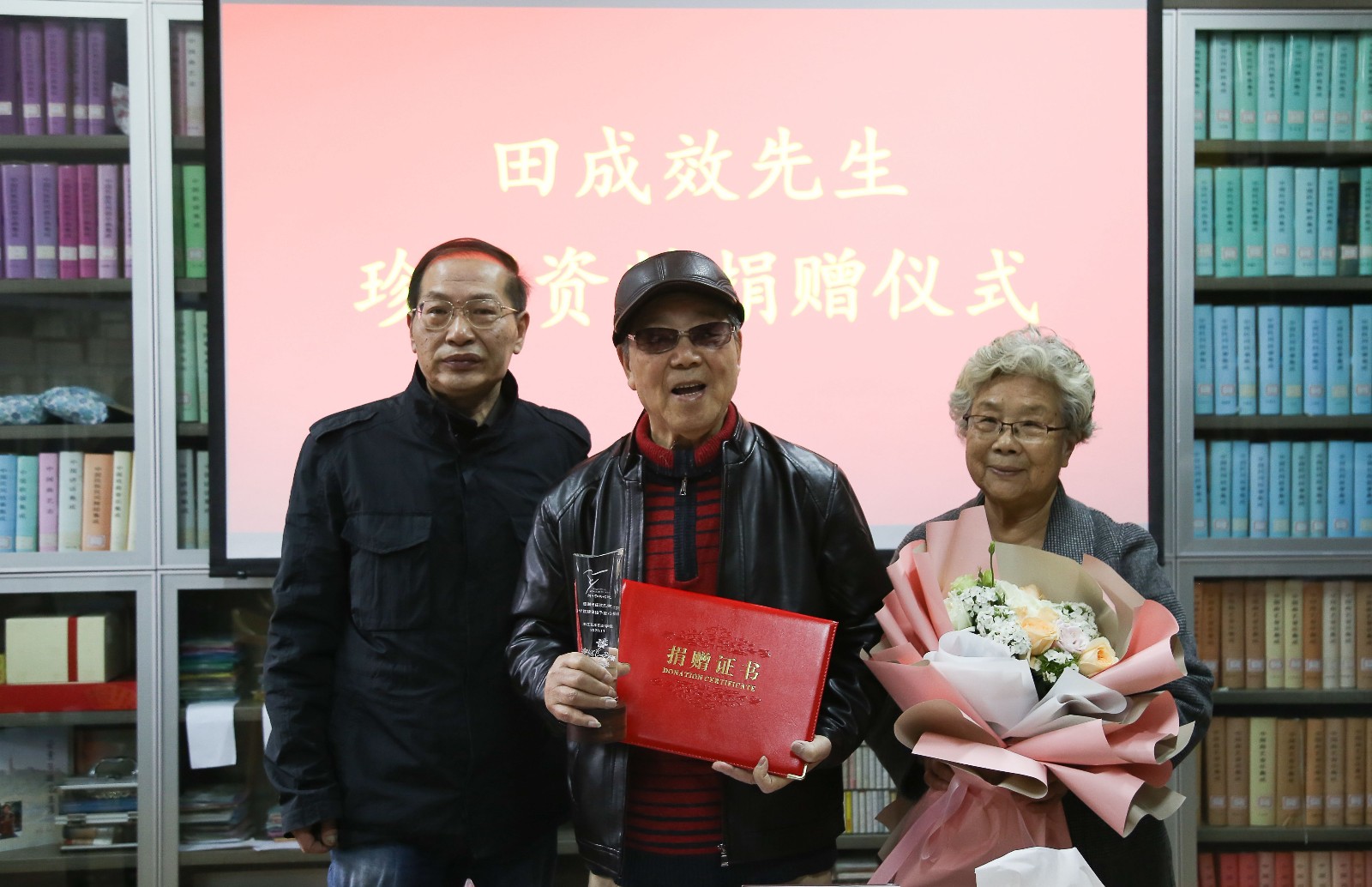 田成效是越剧男女合演的第一代男演员、浙江越剧界“十个男宝贝”之一,曾与姚水娟合作男女合演版越剧《盘夫》,代表作有《五姑娘》等。1959年开始在我校教学,1962年正式调入我校担任越剧科教师。在长期的教学、实践过程中,积累了丰富的教学经验,培养了大批越剧优秀演员。田成效此次向我校捐赠毕生积累的戏曲资料共计光盘1120张、磁带520盒、藏书100册,另有他教学所使用的化妆箱、录音机等8件。