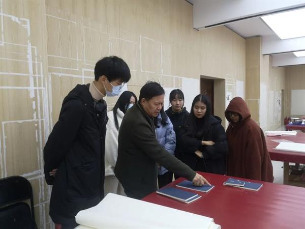 随后,汪自强对18级文物修复与保护学生毕业的装裱作品进行逐一指导,对装裱过程中出现的各种问题进行讲解,对出现的问题给出具体处理意见,同学们都表示获益匪浅。