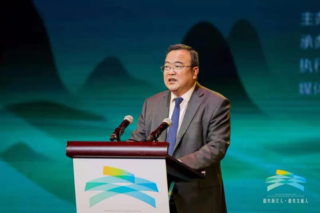 绿水青山,诗画浙江。浙江文旅,你最美丽。为充分展示新时代我省广大文化和旅游工作者凝心聚力、共谋发展、积极服务“重要窗口”建设的精神风貌,在全社会树立正确鲜明的价值导向,大力倡导学习最美、崇尚最美、争当最美的时代风尚,1215日晚,由中共浙江省委宣传部、浙江省文化和旅游厅联合主办的2020年浙江省首届“最美浙江人·最美文旅人”发布会在浙江音乐厅举行。浙江省政府副秘书长蔡晓春,中共浙江省委宣传部常务副部长来颖杰,浙江省文化和旅游厅党组书记、厅长褚子育,浙江广电集团总裁、党委书记吕建楚,中共浙江省委直属机关工委副书记俞忠勤,浙江省教育厅一级巡视员丁天乐,浙江省人力资源和社会保障厅二级巡视员边强以及浙江省文化和旅游厅所有党组成员等出席活动。