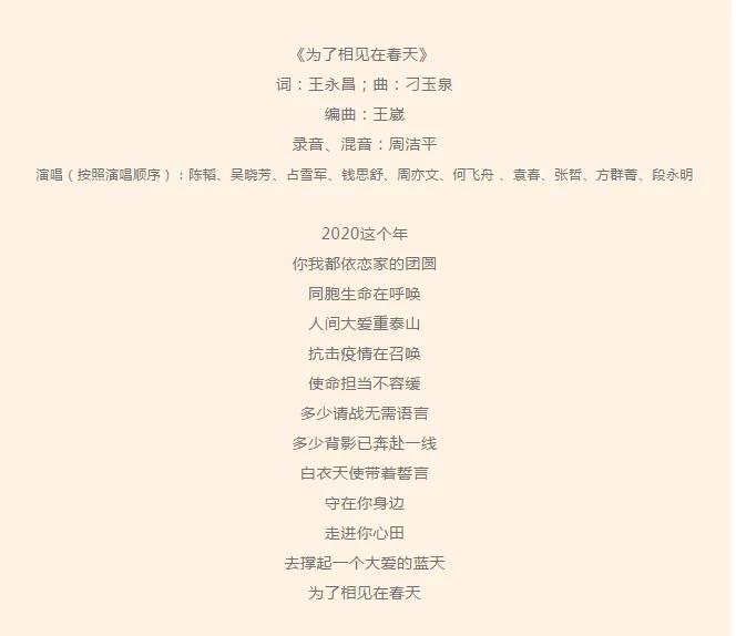 在疫情面前、危难时刻,浙艺音乐人和浙江音乐工作者一道,充分体现了责任和担当,不计个人得失,放弃节假日休息时间走到一起,满怀大爱和勇气为人民歌唱,传达心声,致敬逆行英雄。